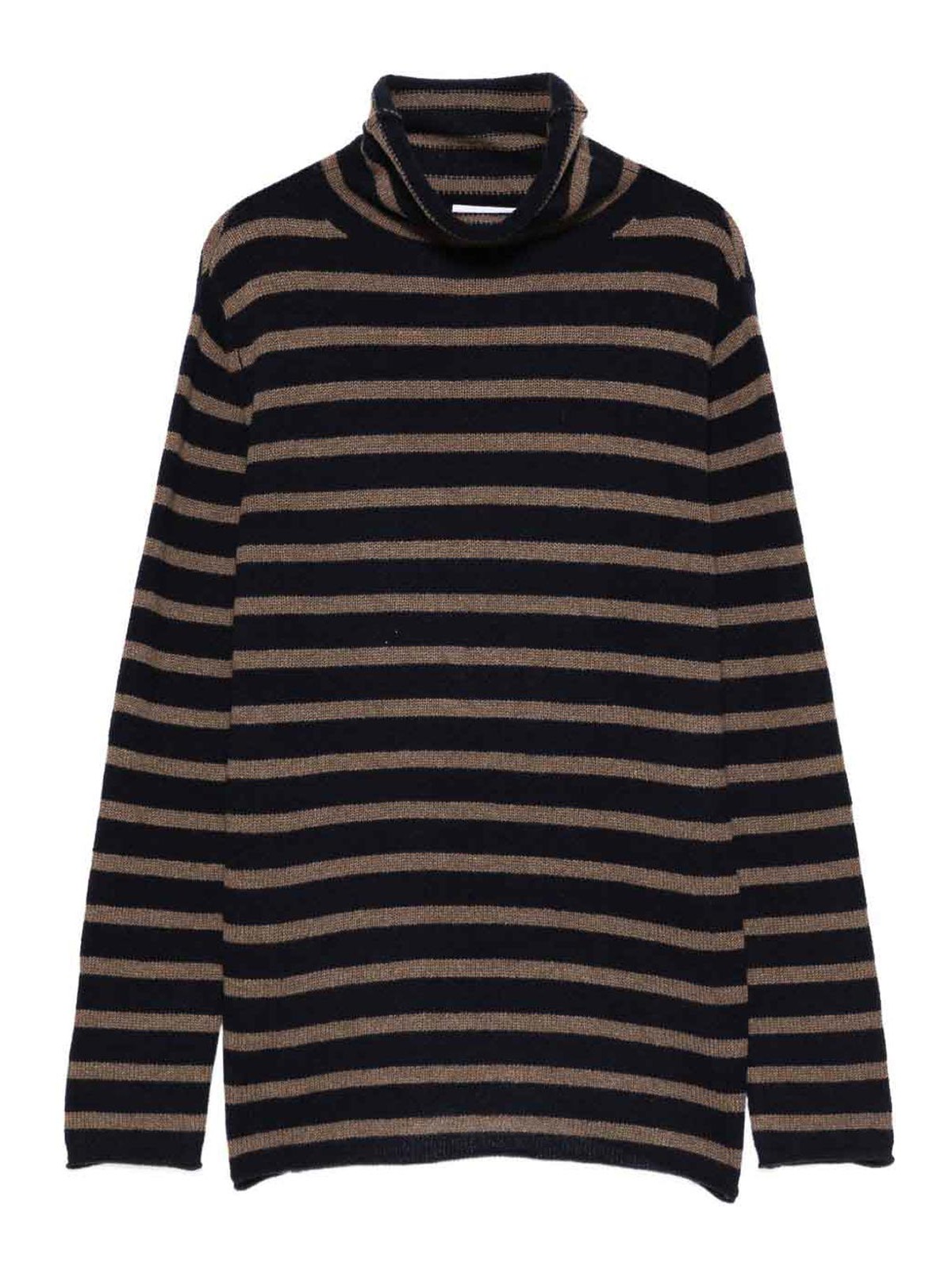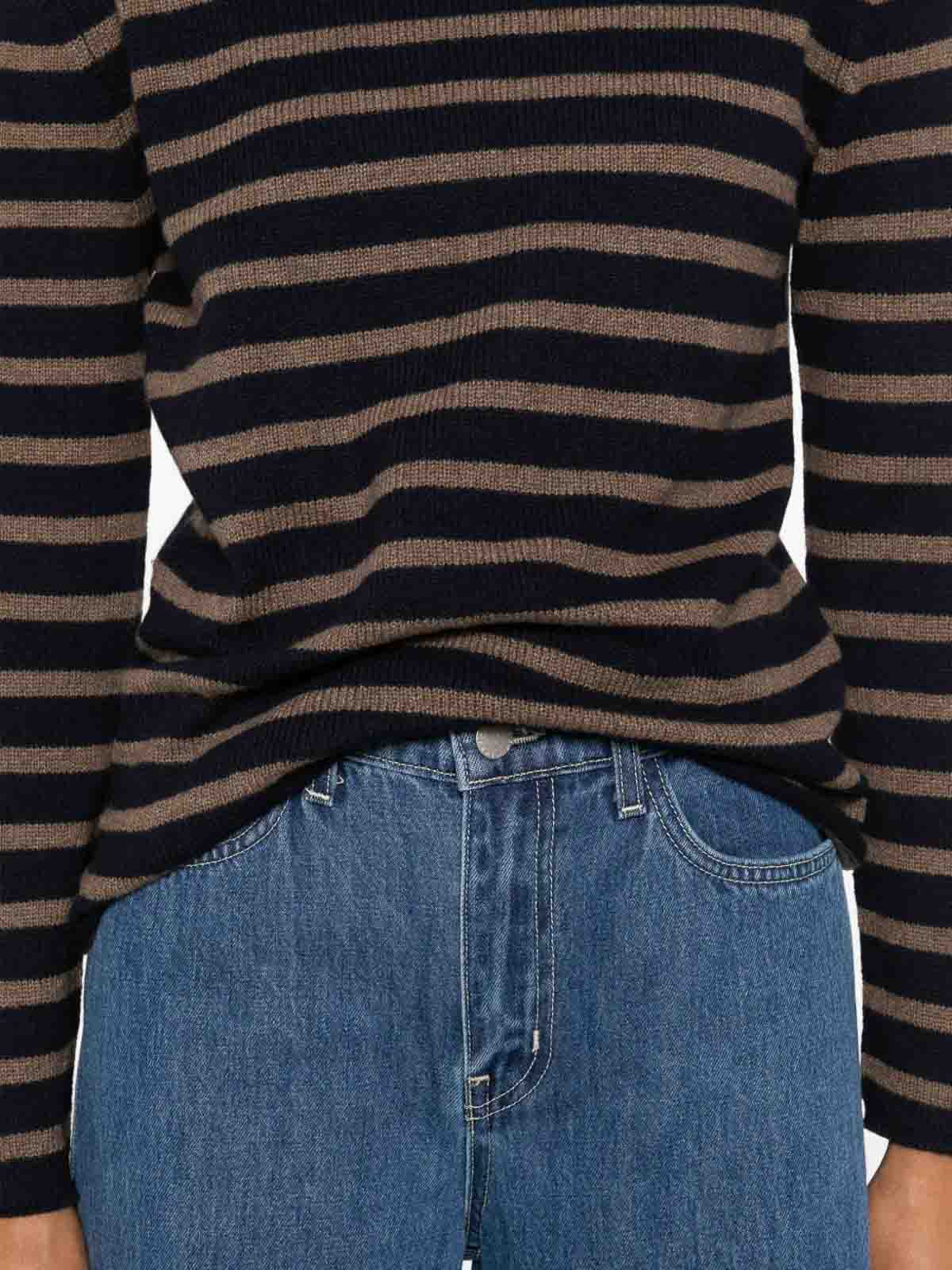 Cachemir de manga larga con rayas horizontales azules y marrones