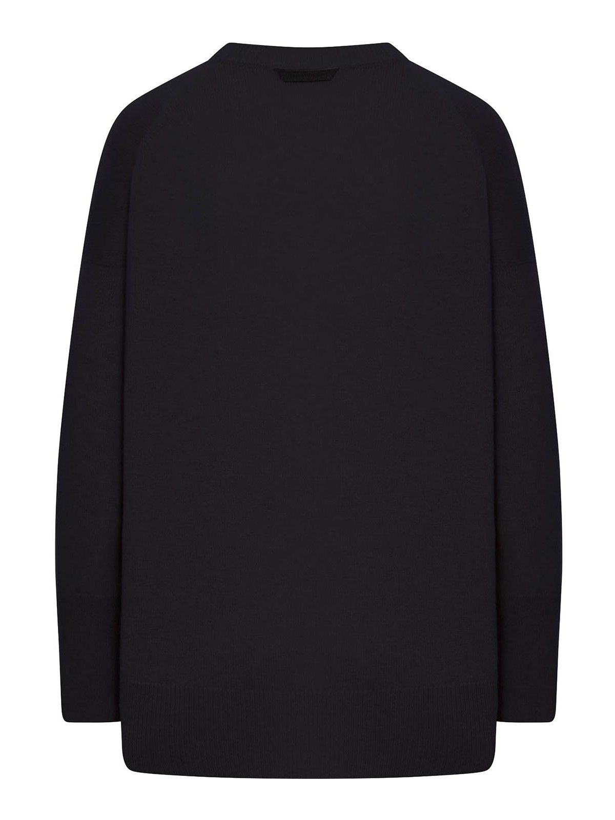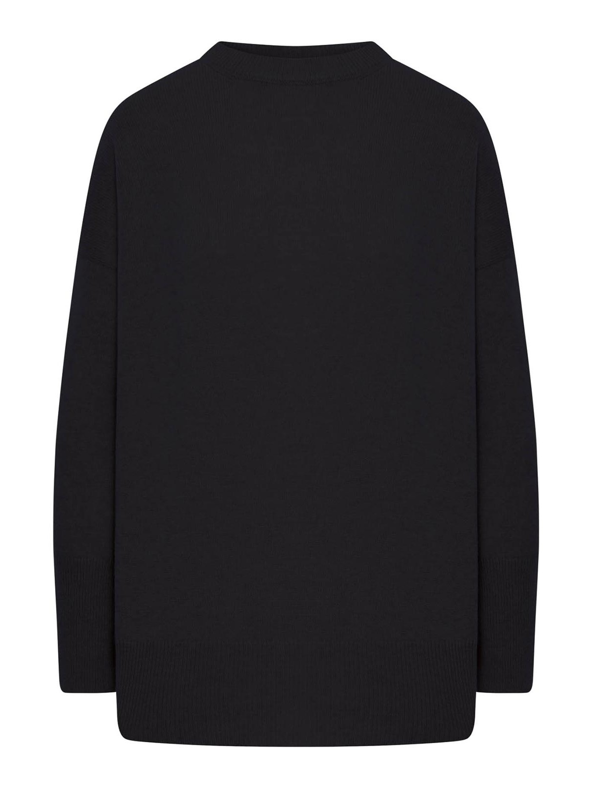 Cuello redondo, raglán, dobladillo largo acanalado en S, puños y cuello, gran tamaño, color negro