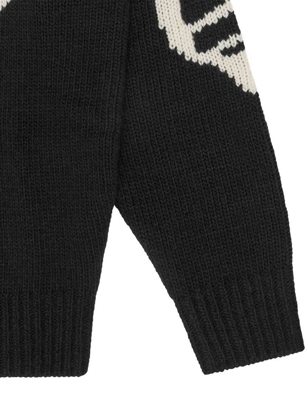 Diseño de intarsia negra, puños acanalados, dobladillo acanalado
