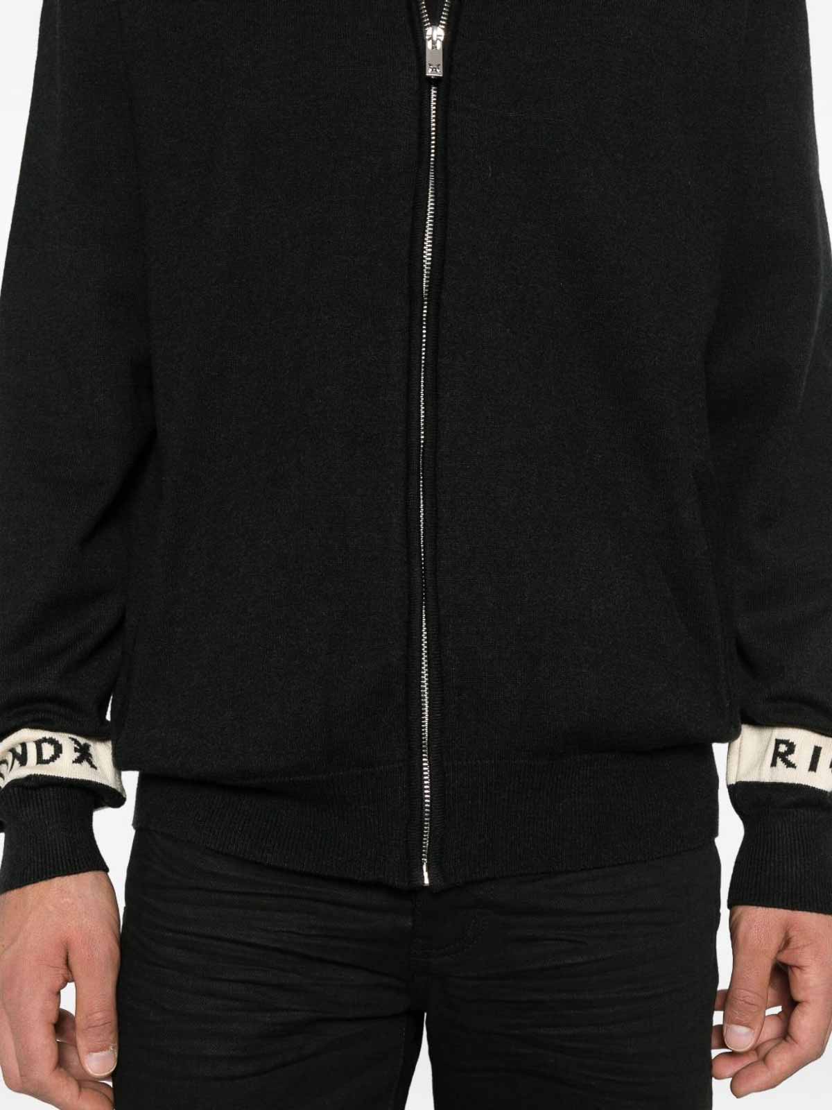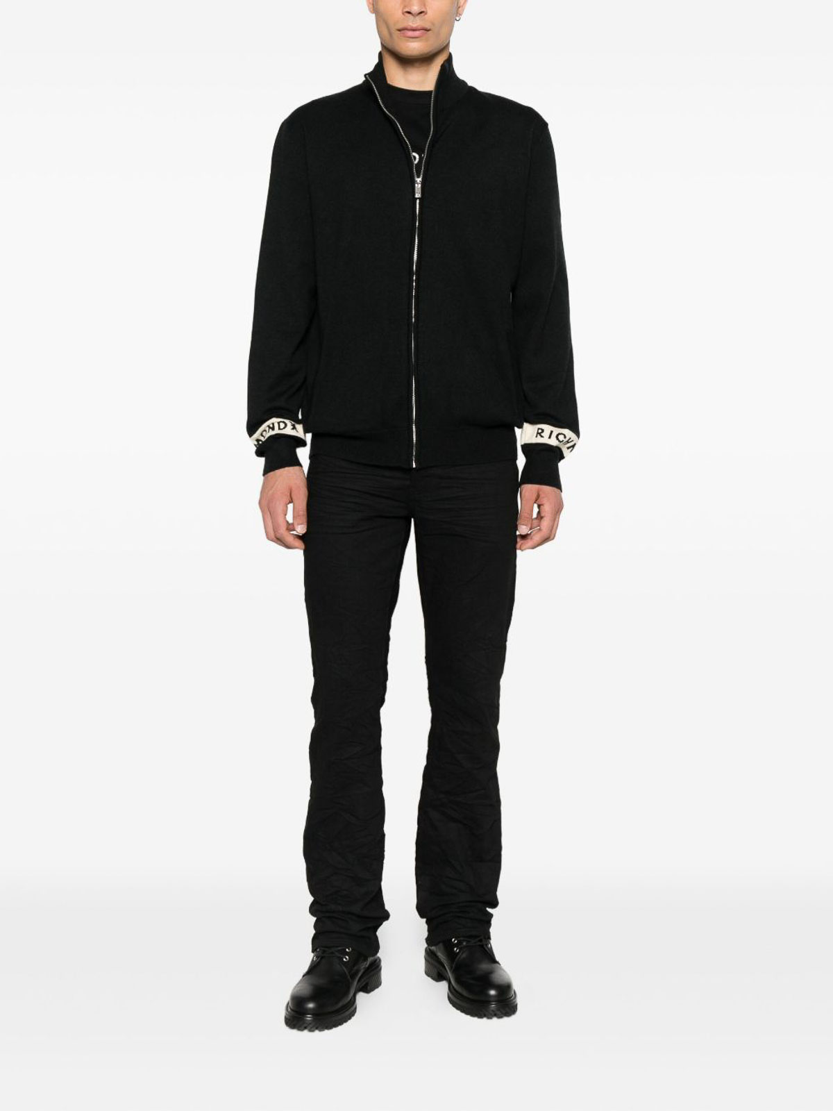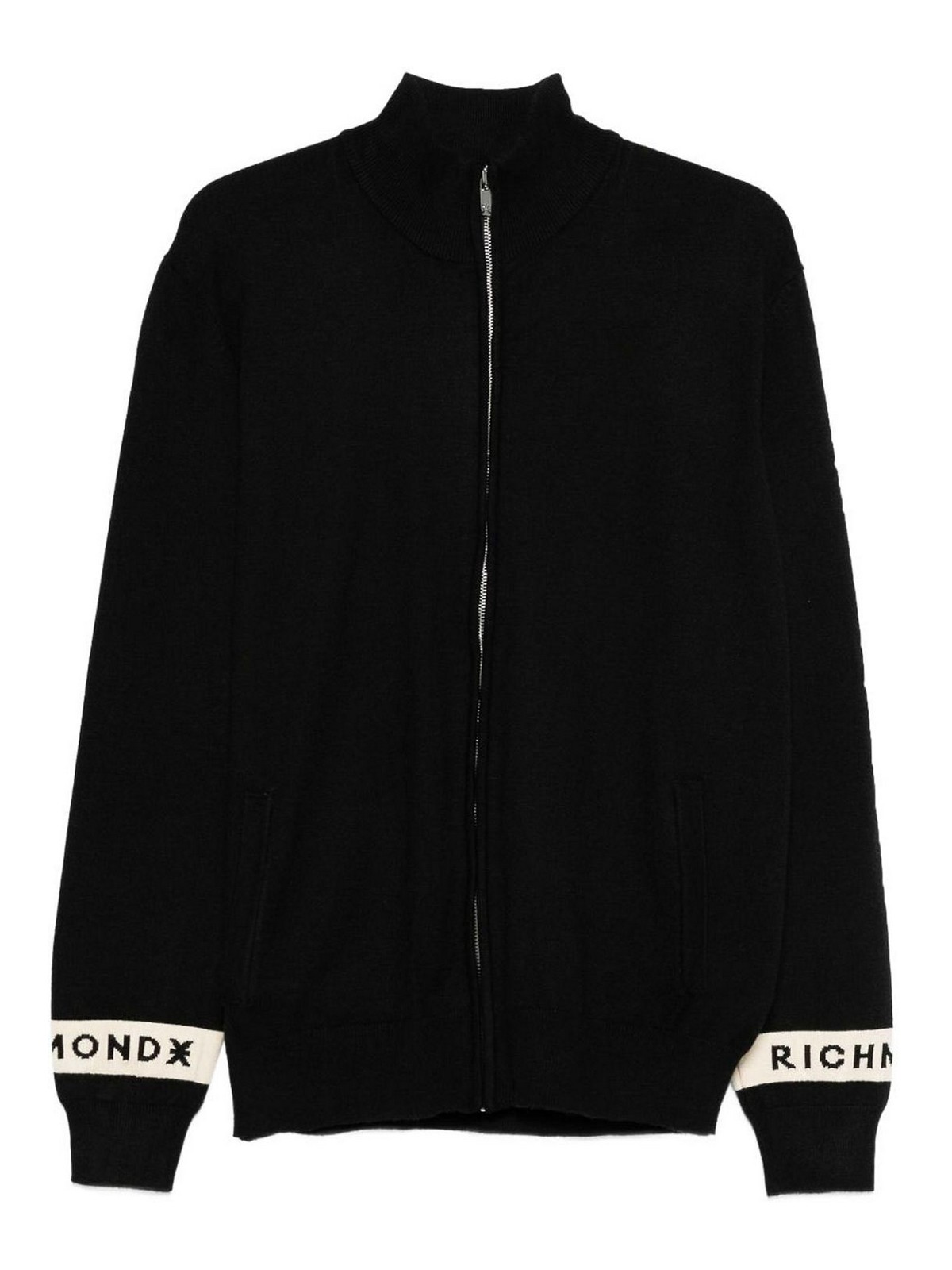 Cremallera corta negra, cuello alto, puños acanalados, mangas largas