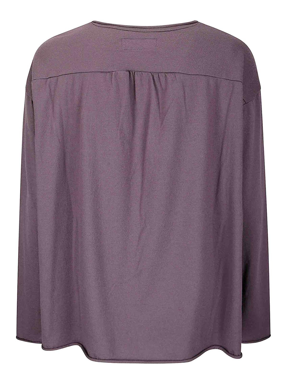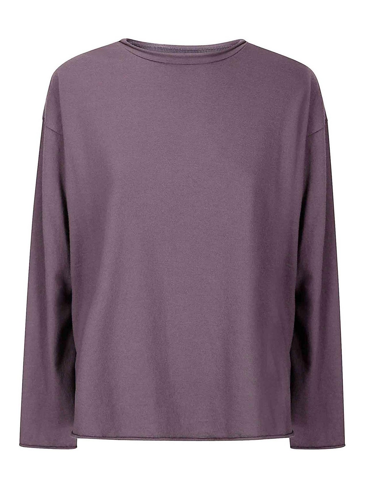 Camiseta de lana virgen, cuello redondo, manga larga, espalda fruncida, gran tamaño, tejido suave.