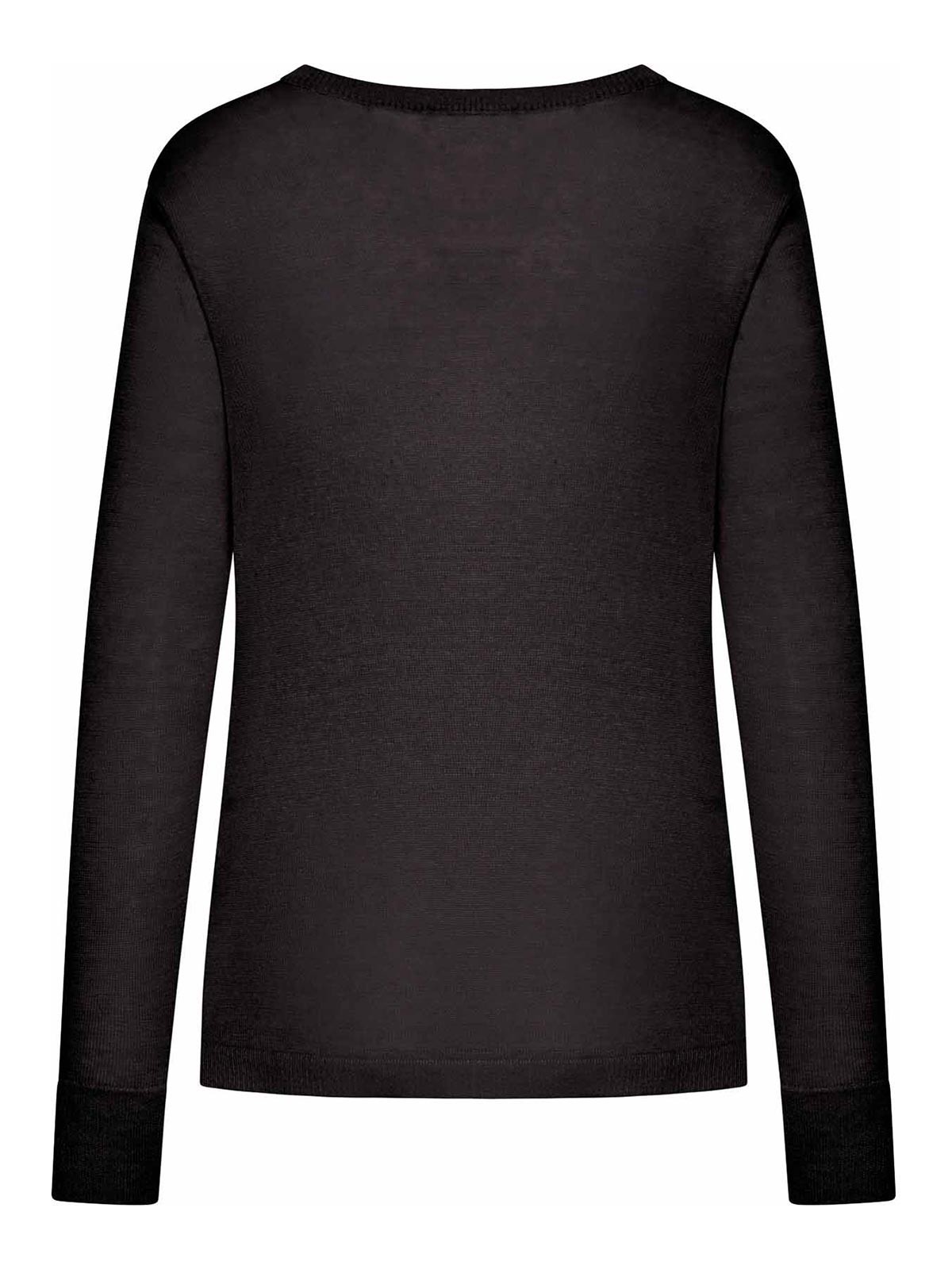 Cuello en V, puños largos acanalados, dobladillo y ribete ajustados, color negro