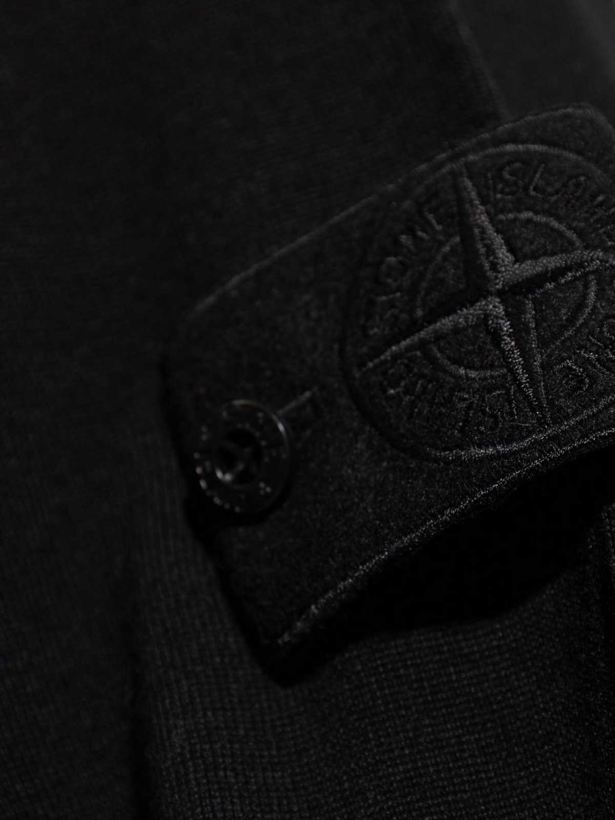 Dobladillo y puños con cuello redondo y canalé fino, mangas largas, costuras descubiertas en los hombros y las sisas, insignia del fantasma de Stone Island en la parte izquierda, puntada de punto ancho, color negro