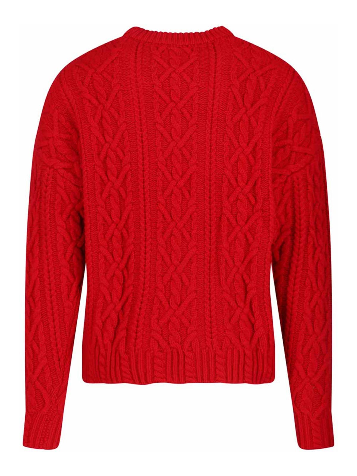 Jersey tipo cable de lana Aspesi, rojo, cuello redondo, hombros caídos, manga larga, acabados acanalados, dobladillo recto.
