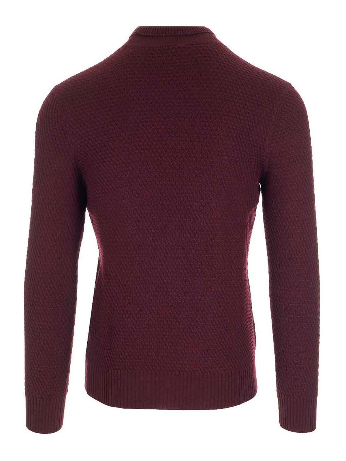 Jersey de cuello alto burdeos confeccionado en algodón en forma de panal con dobladillos acanalados de tagliatore.