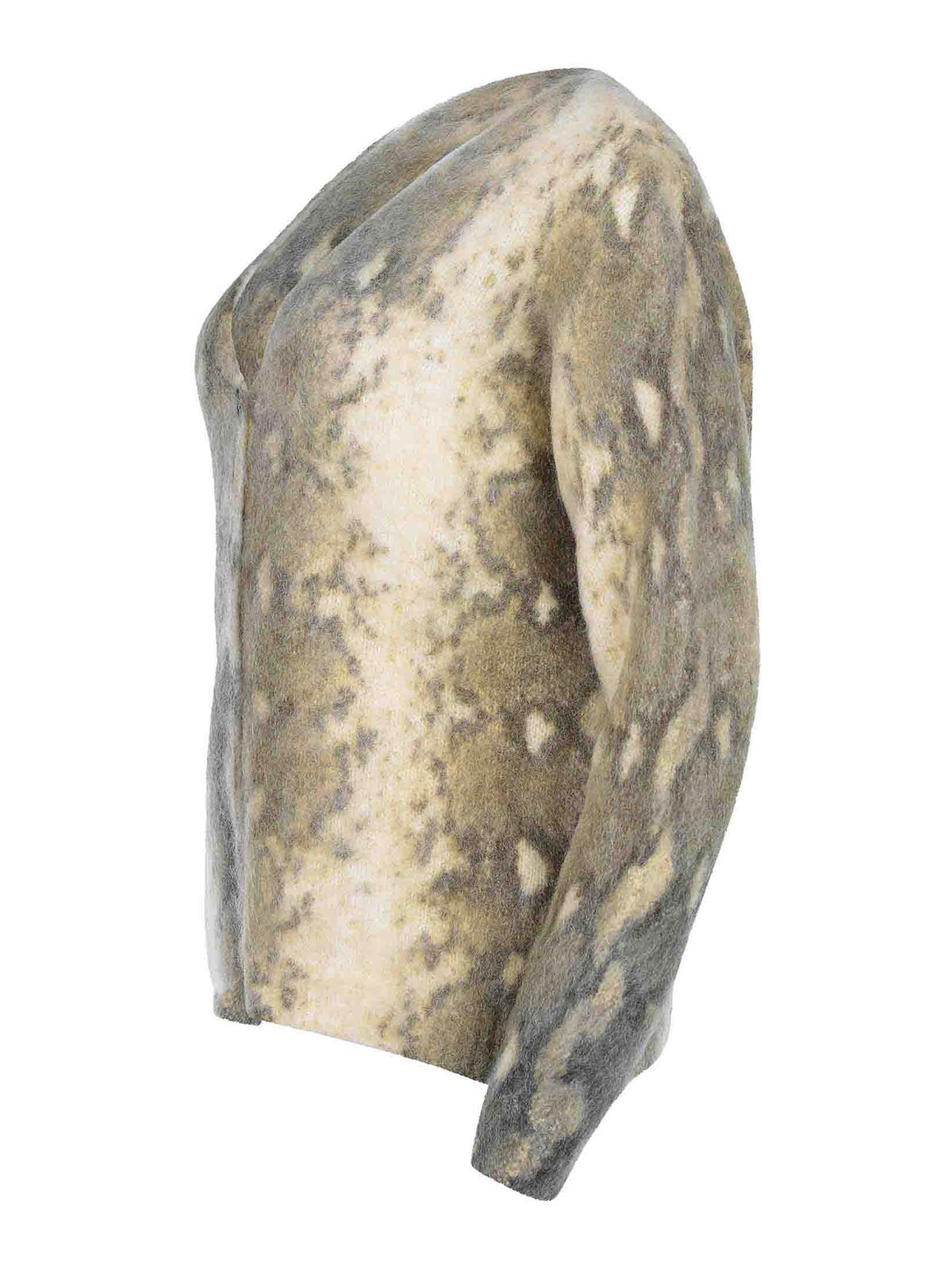 Jersey tipo solotre confeccionado en mezcla de lana con estampado de pitón, cuello en V, manga larga, cierre con botones en la parte delantera, 26% lana, 26% mohair, 25% acrílico, 21% nailon, 2% elastano