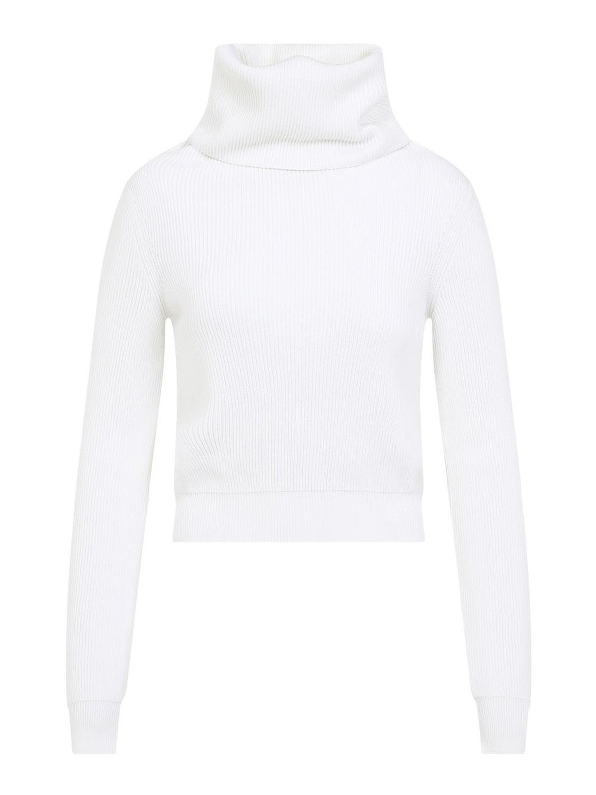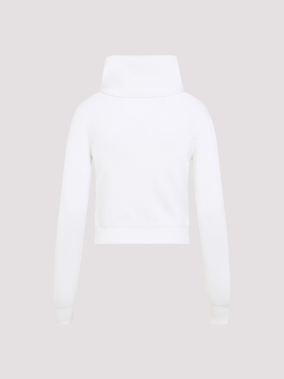 Camiseta Alaa de manga larga con capucha de algodón blanco natural. Confeccionada en mezcla de algodón y poliéster. Cuello holgado y alto, mangas largas, dobladillo recto, diseño recortado, acanalado en toda la prenda.