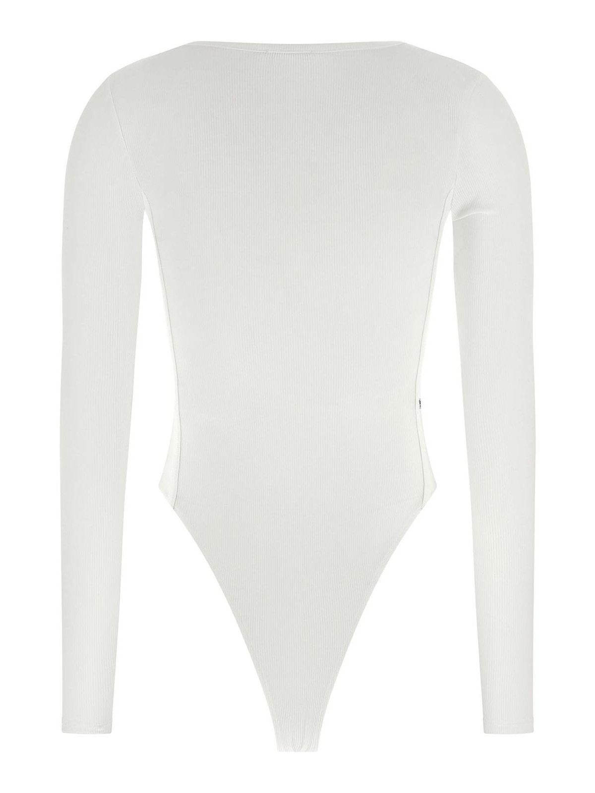Body en forma de T en mezcla de viscosa elástica ecovero, parche lateral con el logotipo, escote ancho y redondo en la parte delantera, manga larga, funda tipo tanga con pernera alta y botones a presión en el dobladillo.