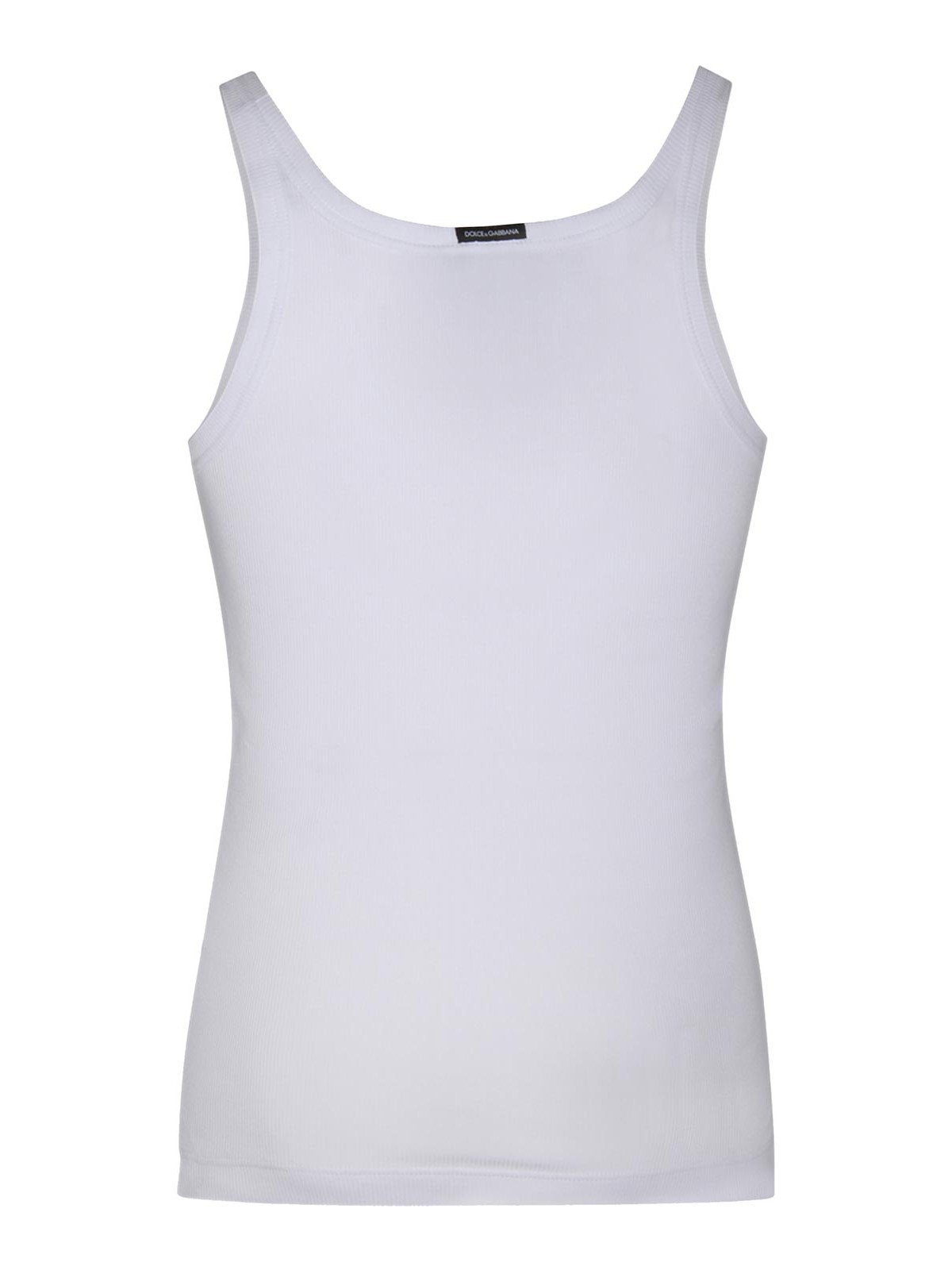Camiseta blanca sin mangas de dolce&gabbana con parche con el logotipo en el cuello redondo, sin mangas, espalda redondeada y dobladillo recto