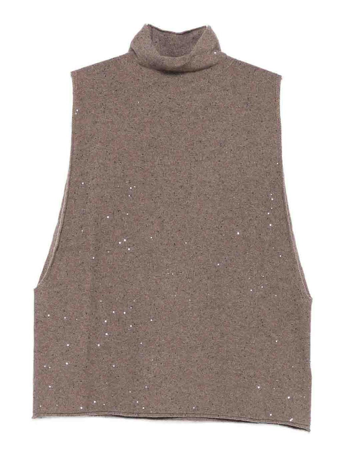 Top de cuello alto «domiziano» beige de antonelli con lentejuelas