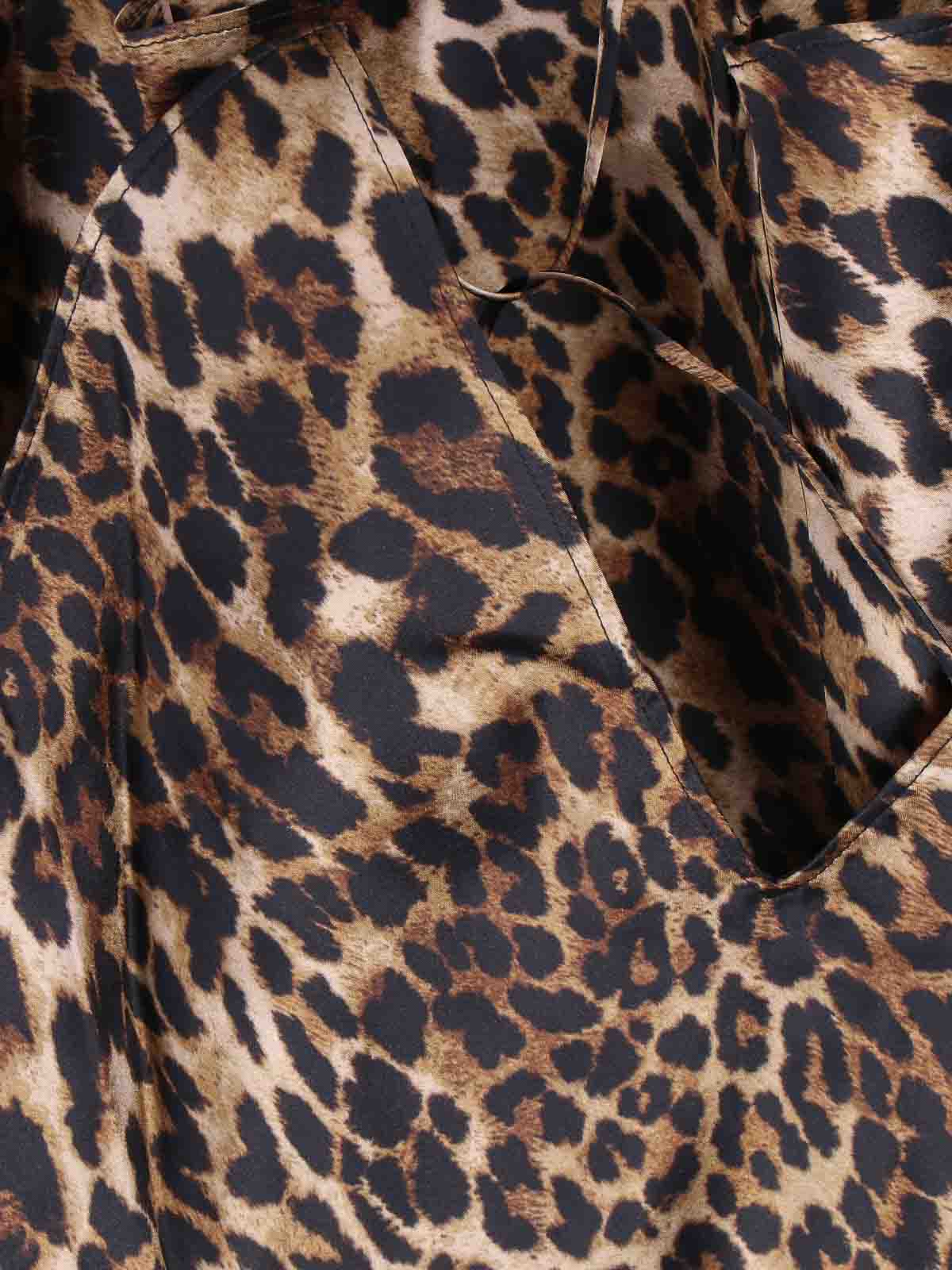 Cami Nili lotan emile, de seda marrón, estampado animal, cuello en V, tirantes cruzados en la espalda, escote largo en la espalda, dobladillo recto.