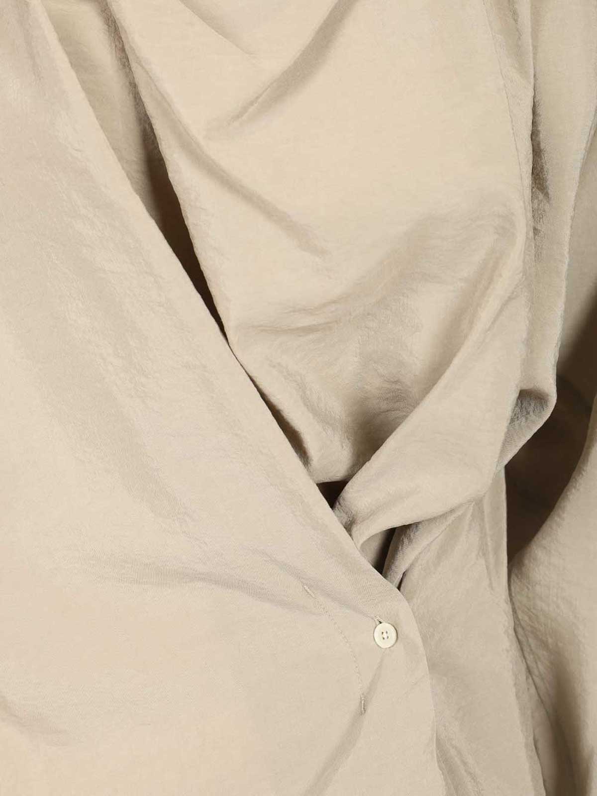 Top retorcido de manga larga confeccionado en mezcla de seda con puños abotonados y botón lacado en el lateral