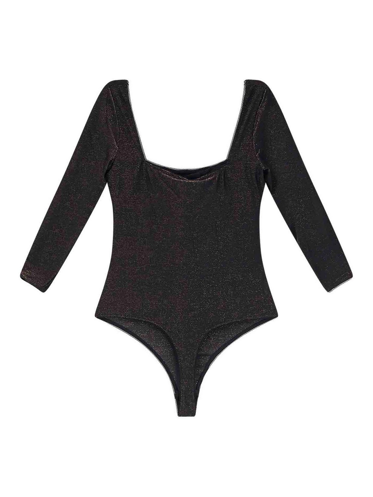 Escote cuadrado con perfil de encaje y parche con logo metálico, cierre interno de gancho con aros en la parte inferior, mangas largas, 79% poliamida, 13% metal, 8% elastano