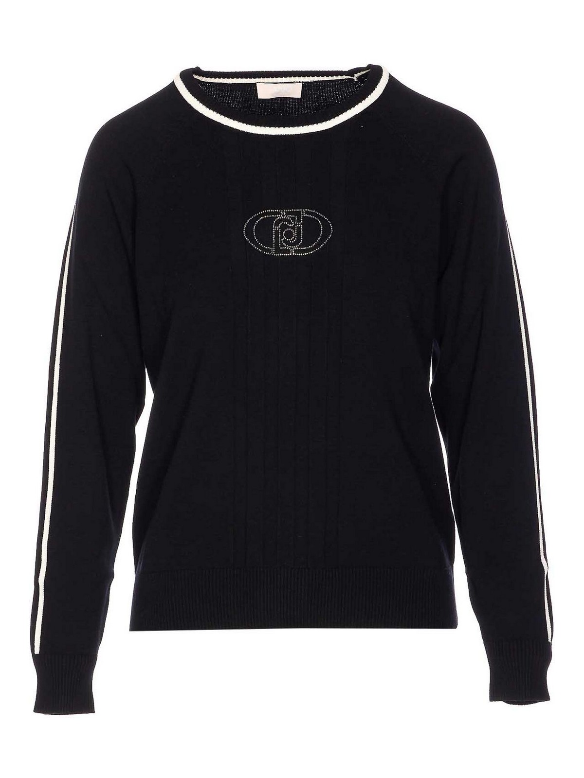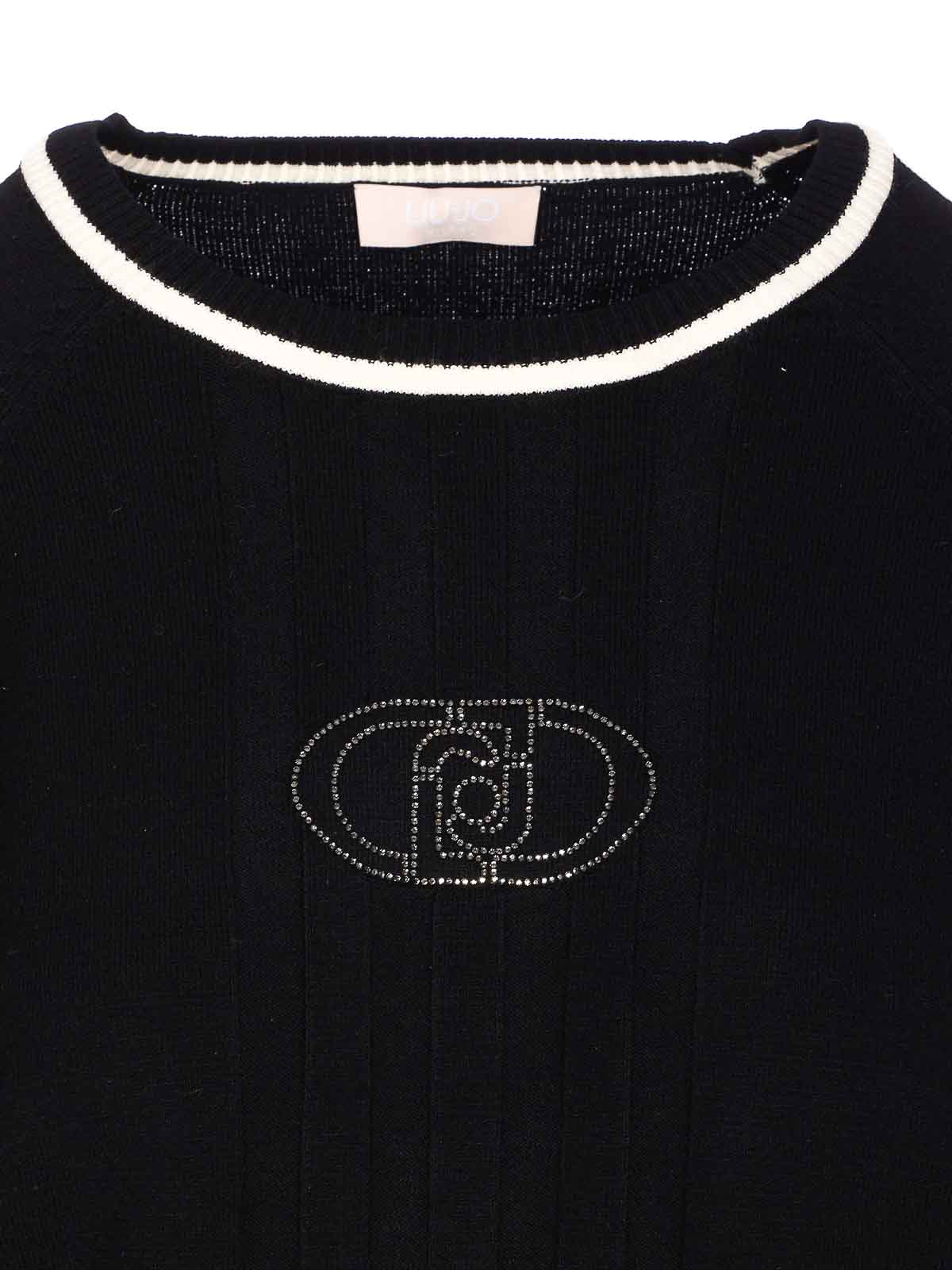 Top negro de manga larga de Liu jo con cuello redondo y logotipo en el
