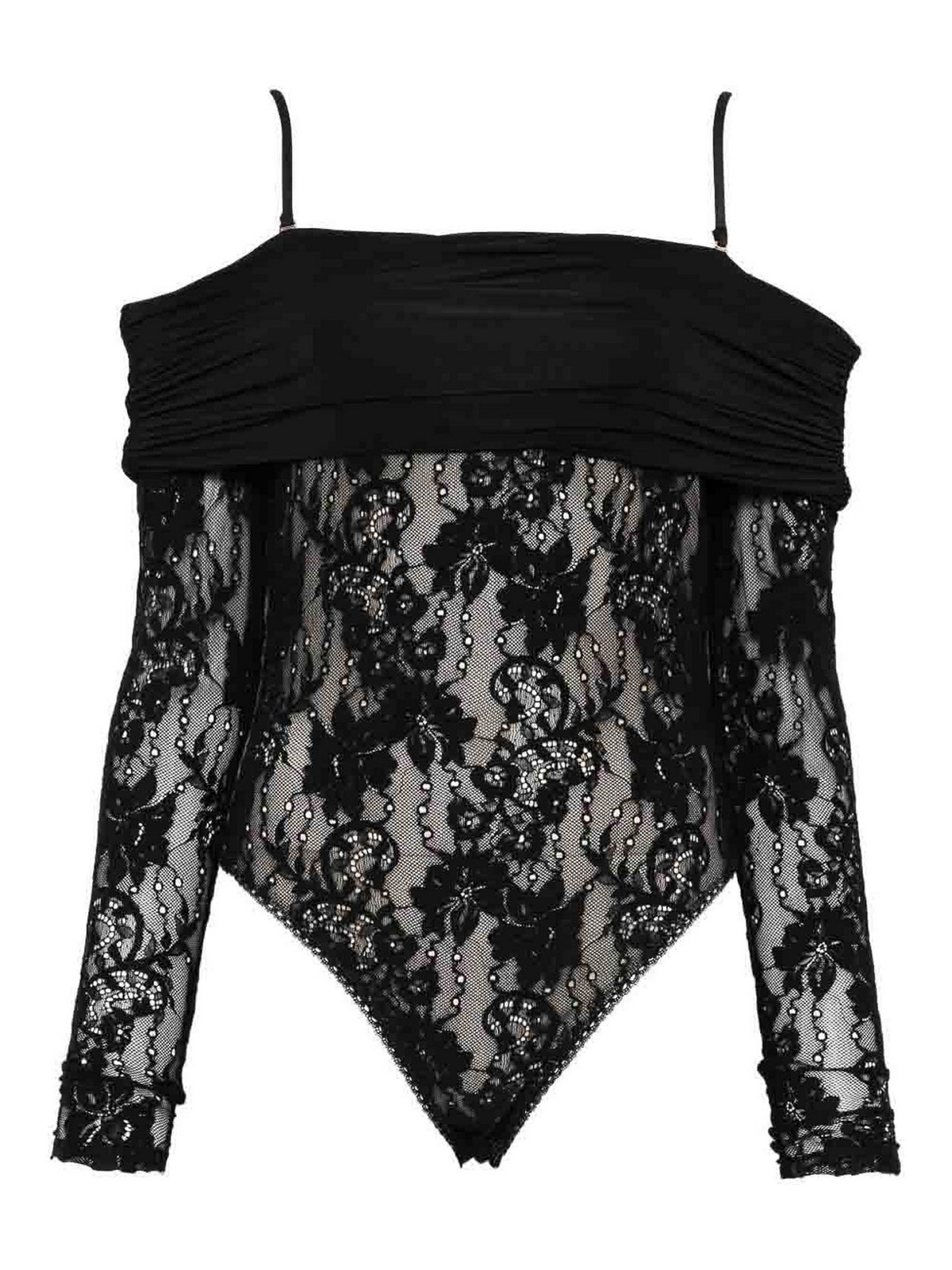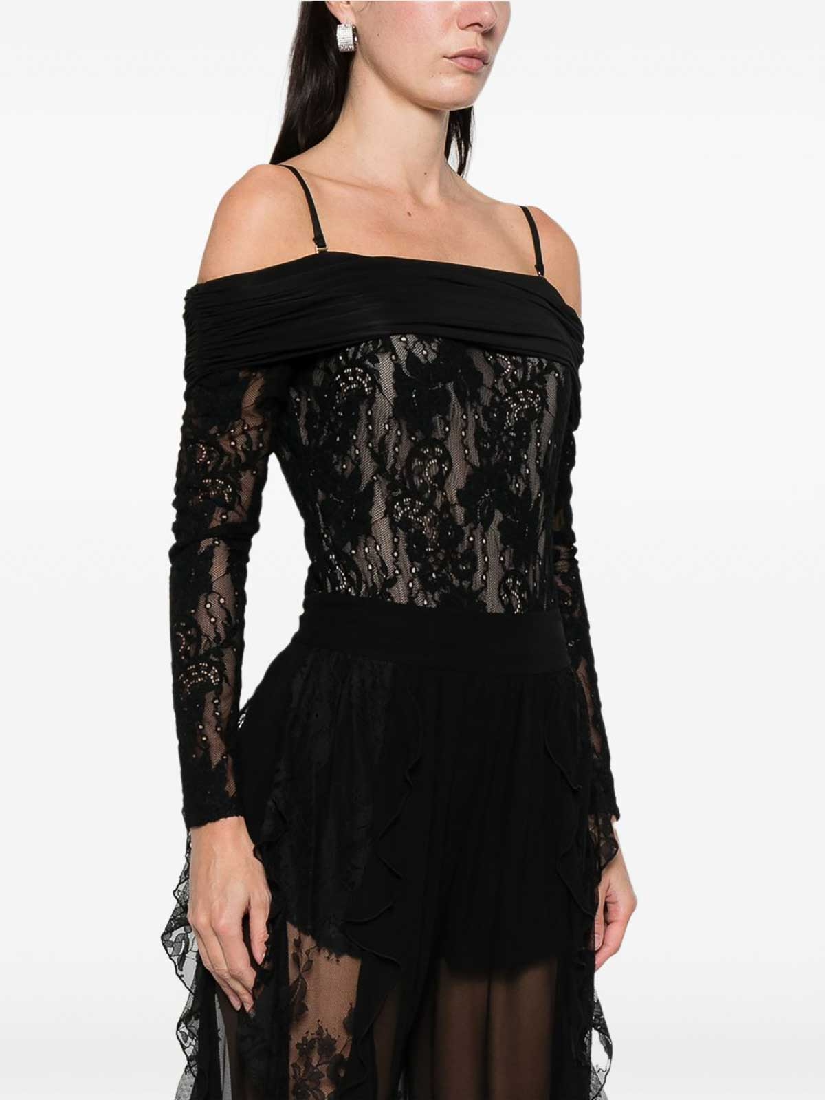 Body de encaje negro con escote bardot de zimmermann