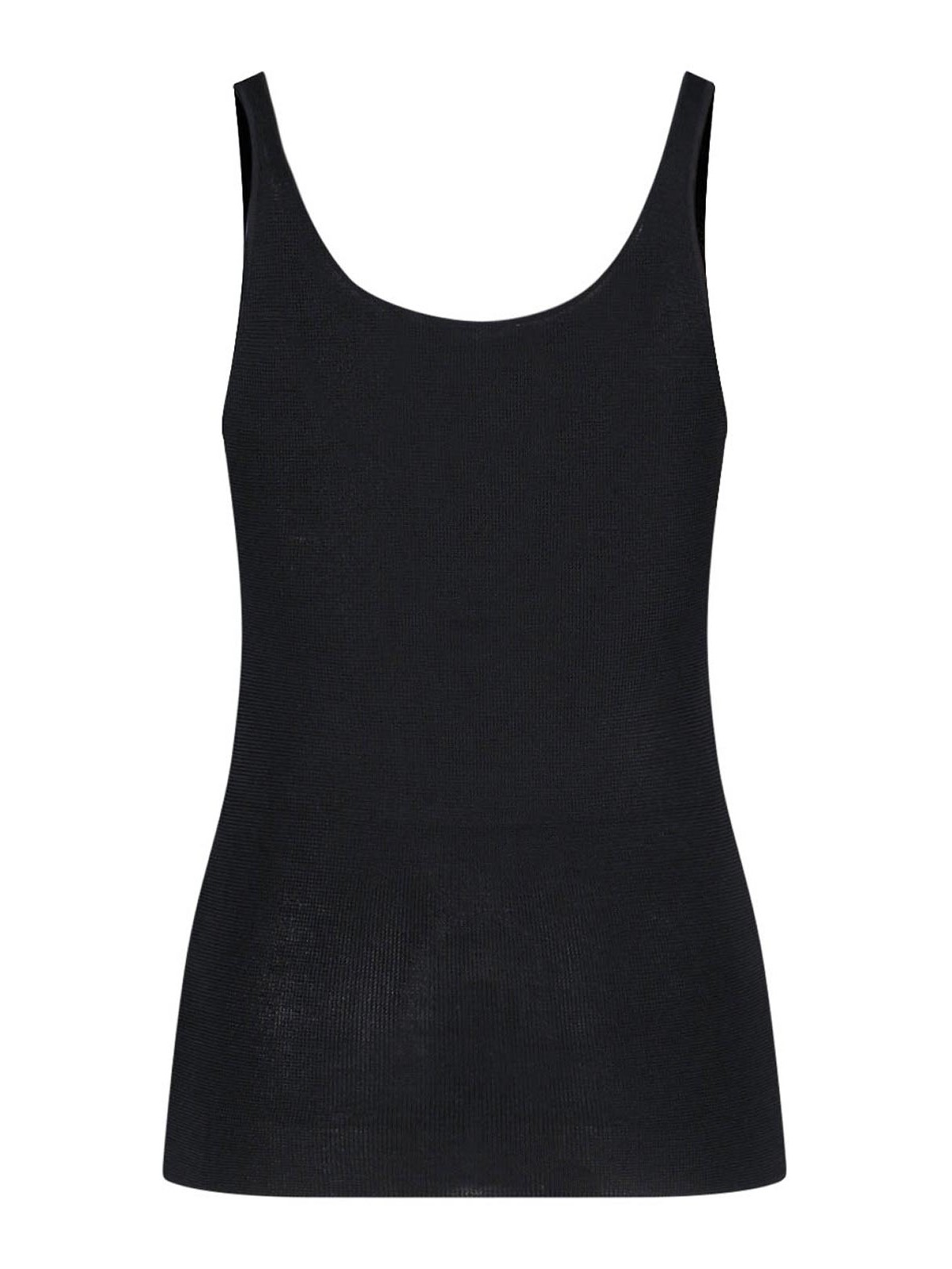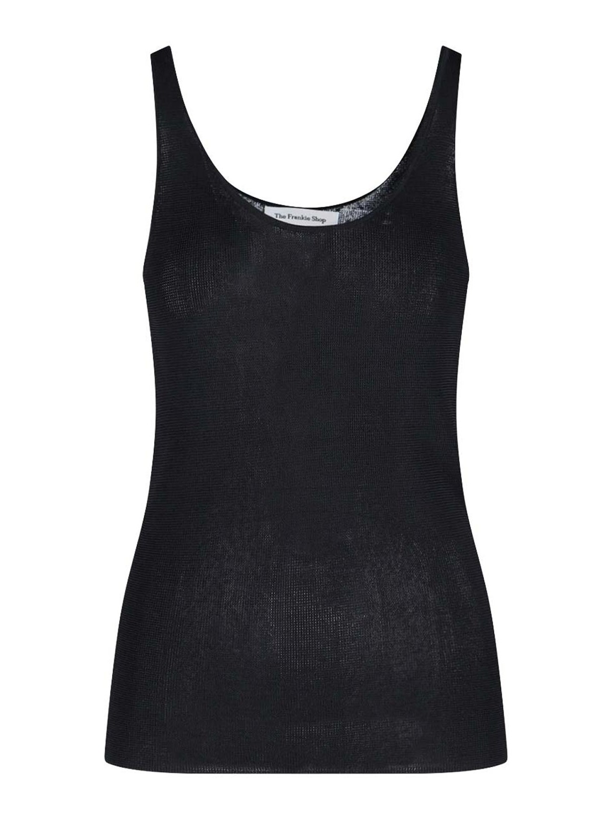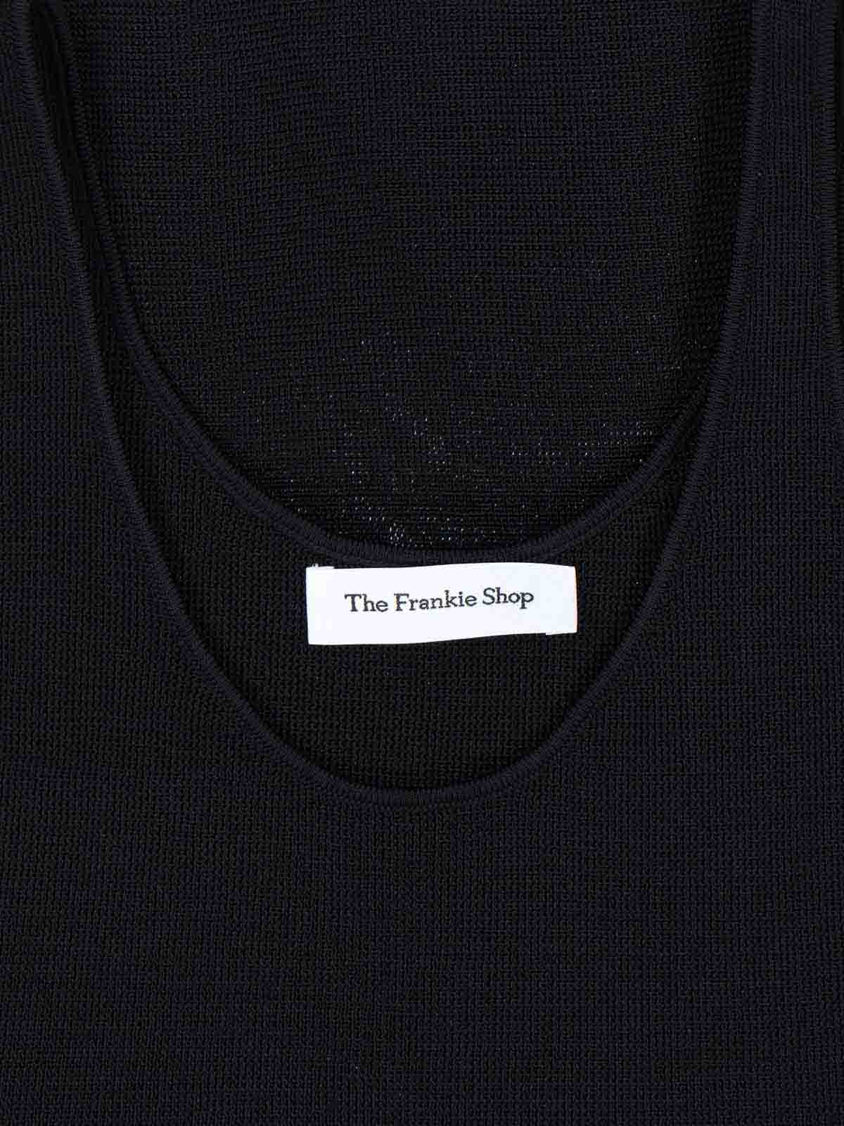 Camiseta sin mangas de punto rivo de frankie shop, en tela negra, escote redondo, tirantes finos, escote profundo en la espalda, dobladillo recto.