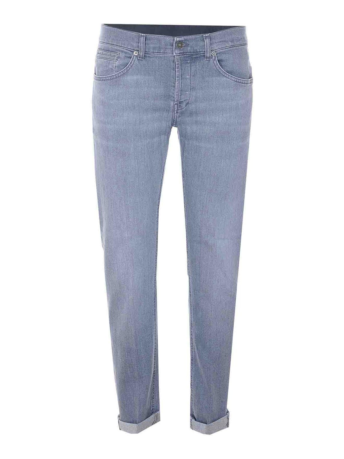 Vaqueros George Dondup de color gris claro, cierre con botones, 5 bolsillos, corte ceñido