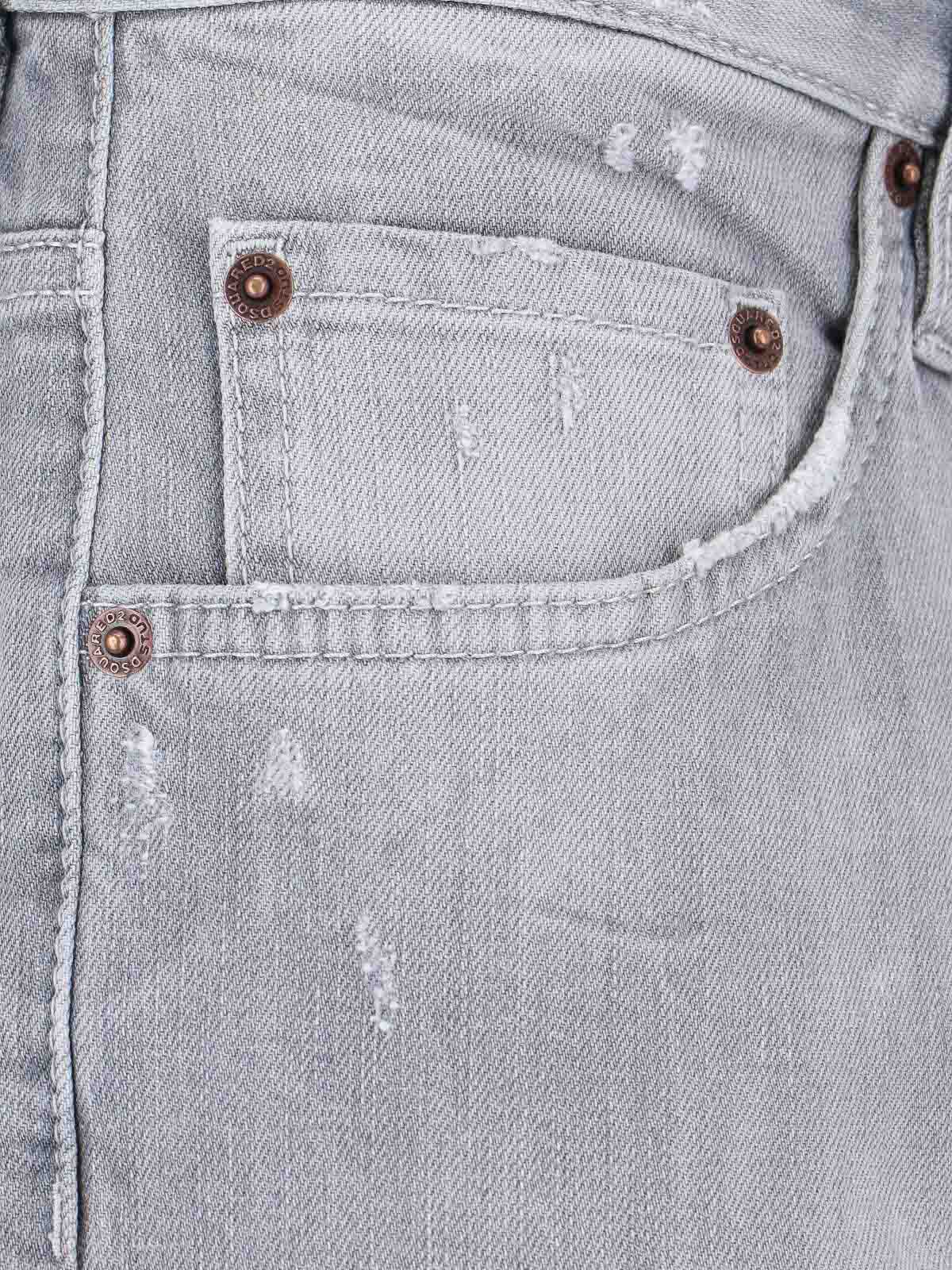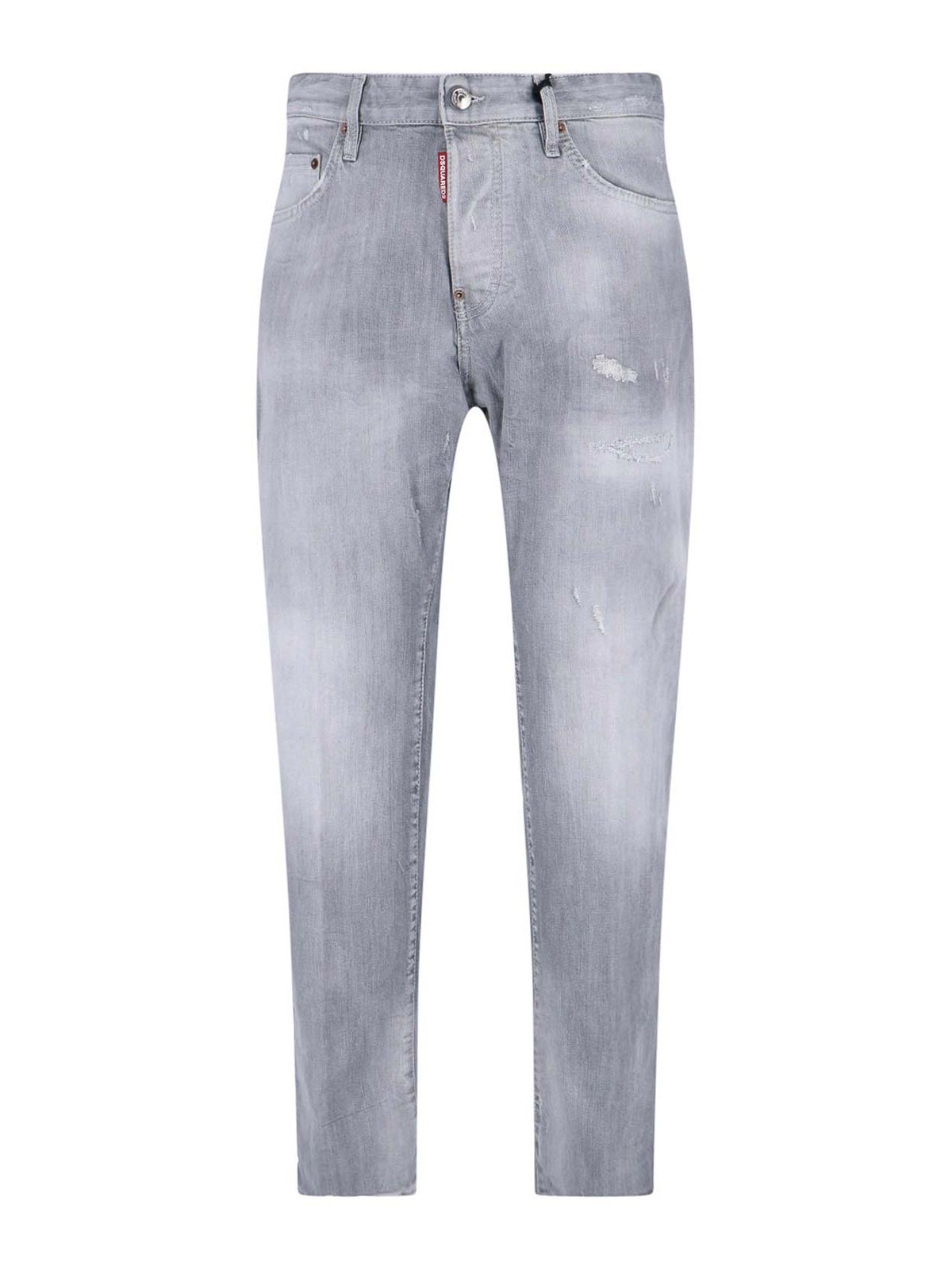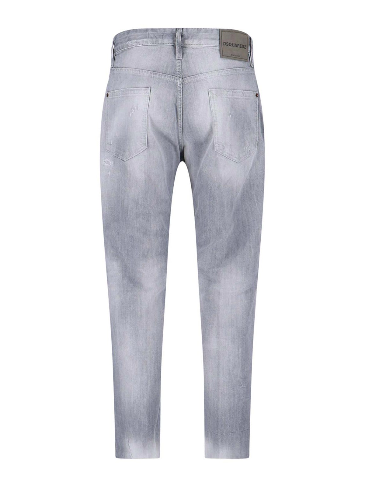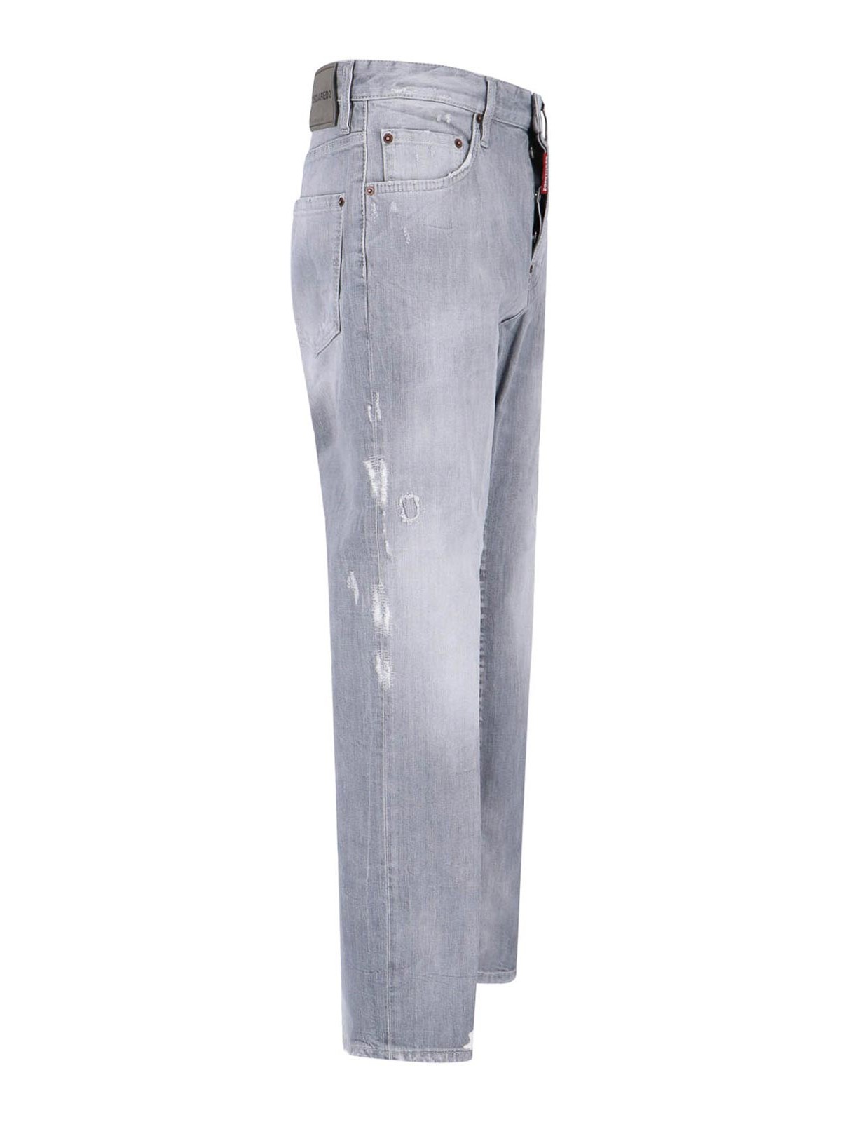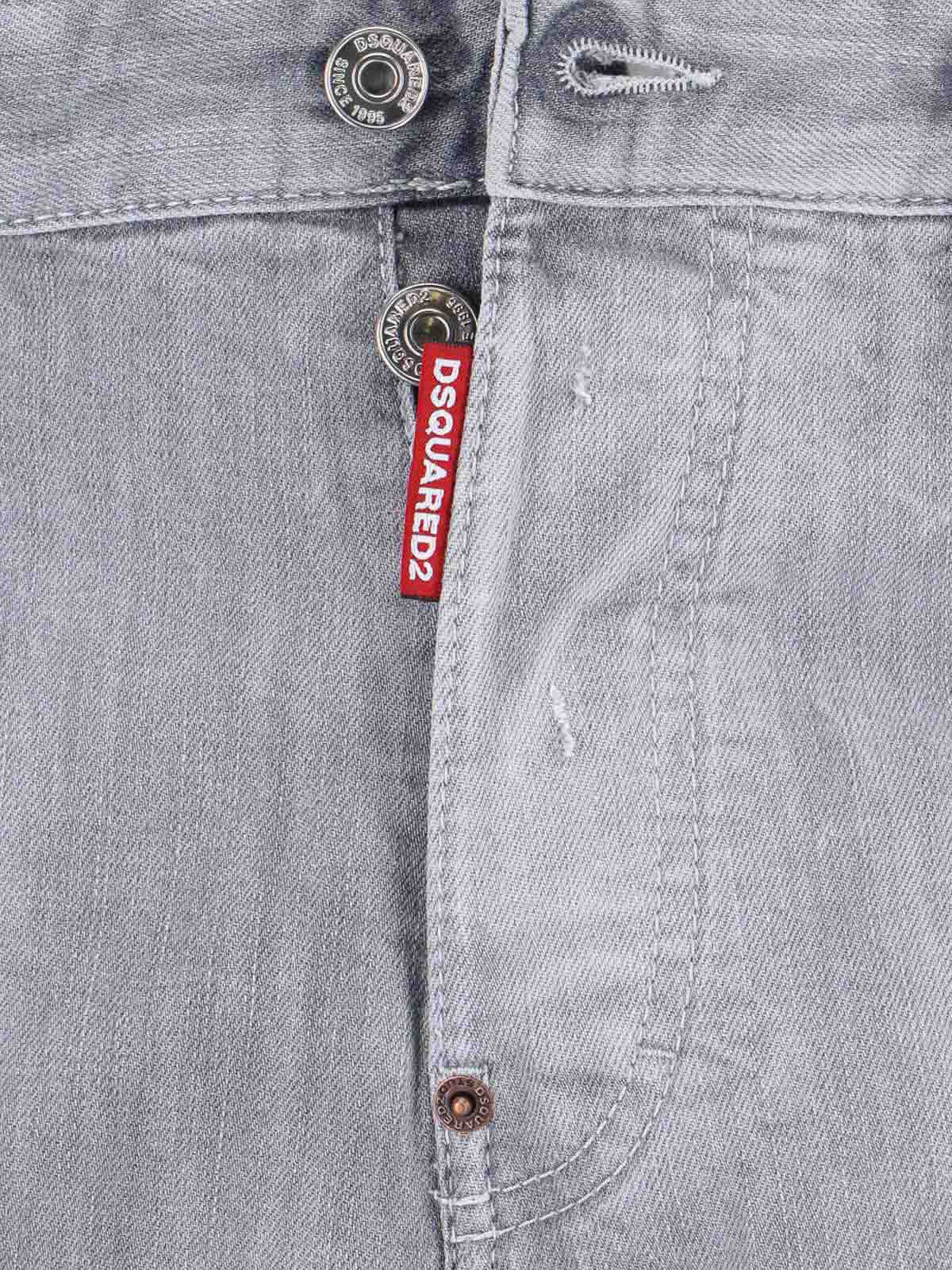 Vaqueros Dsquared2 642 de algodón elástico gris, tono claro, cintura media, cierre con botones en la parte delantera, etiqueta con el logotipo en la parte delantera, parche con el logotipo en la parte trasera, detalles desgastados, pierna recta.