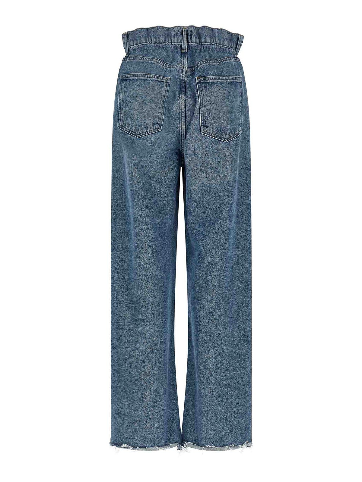 Vaqueros «lyonne in outbreak» de 5 bolsillos, cinturón arrugado en la cintura con elástico, cierre frontal con botón y cremallera, pernera recta con dobladillo ancho deshilachado.