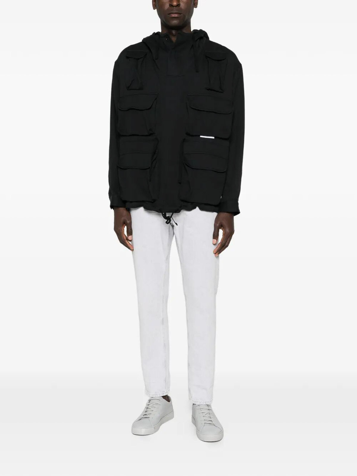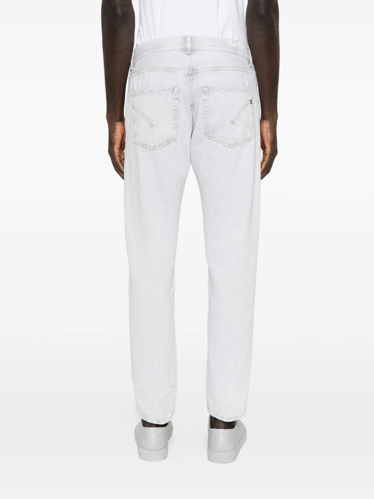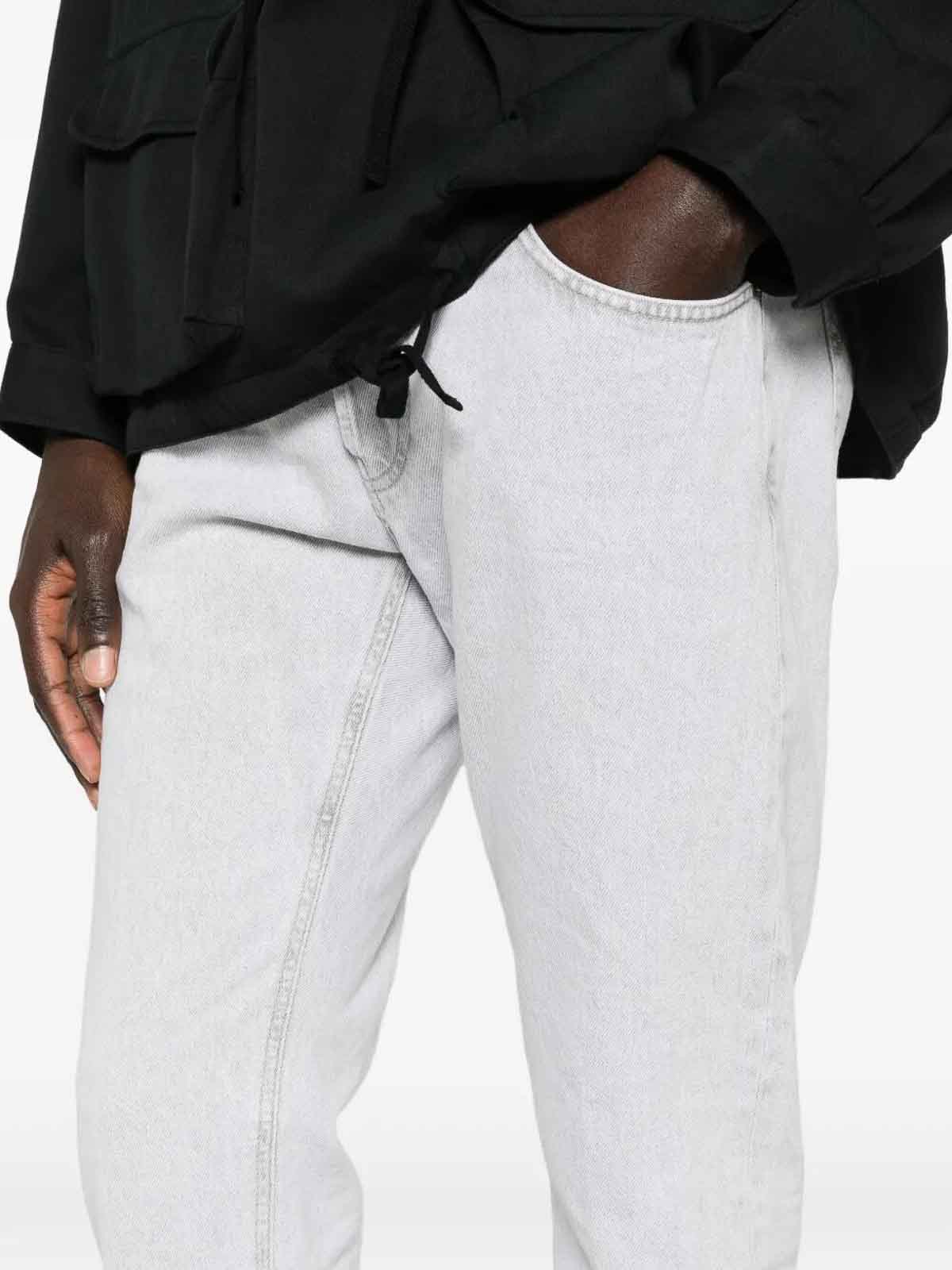 Vaqueros ajustados en forma de zanahoria con volumen ligeramente cónico y confección de cinco bolsillos.