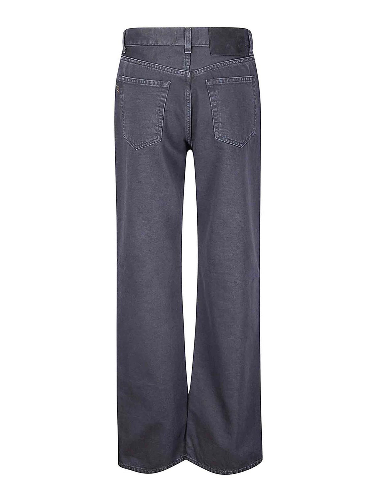 Vaqueros de algodón negros con lavado medio oscuro, tela gruesa, cintura alta, pierna recta, ajuste cómodo.