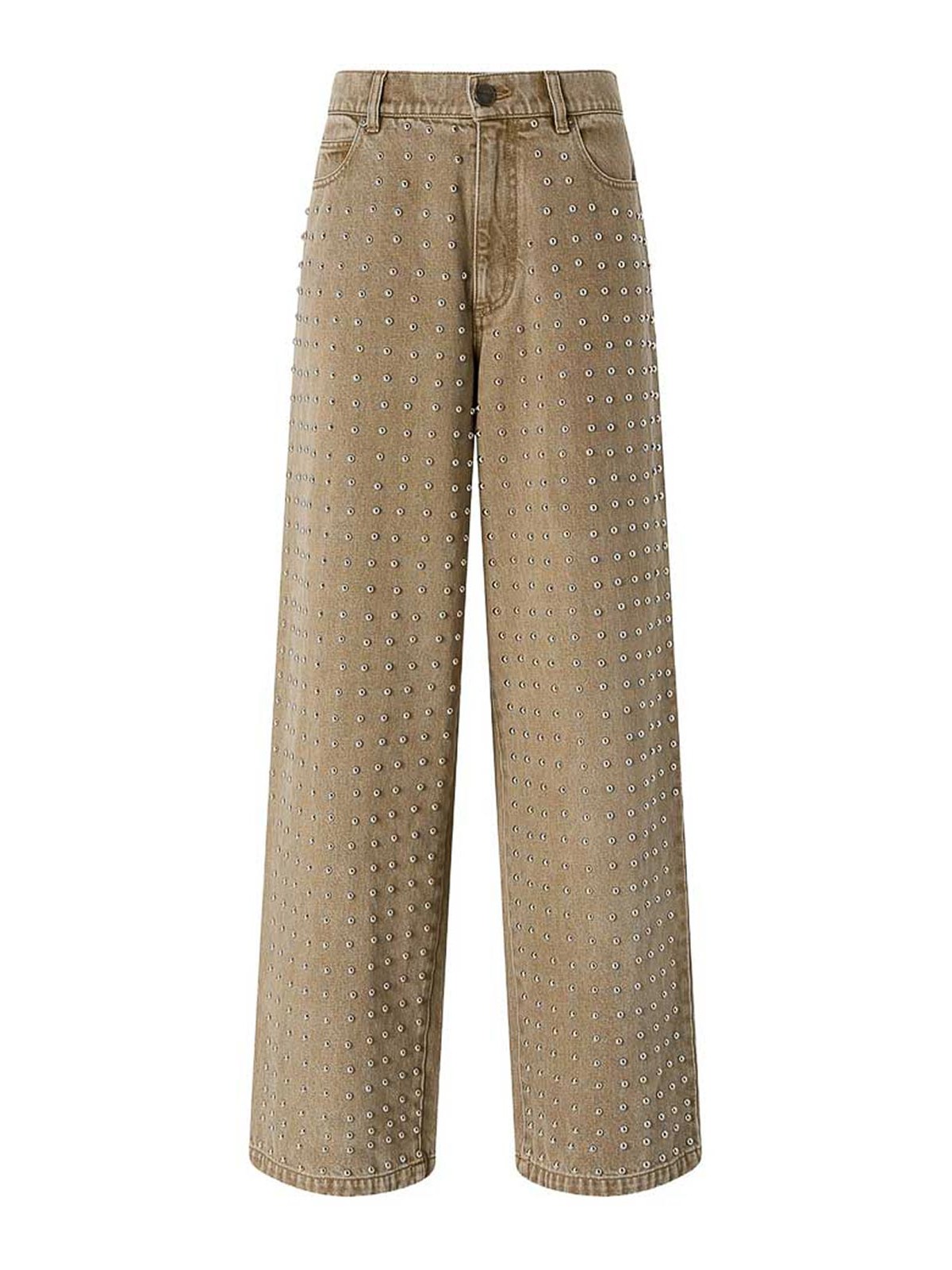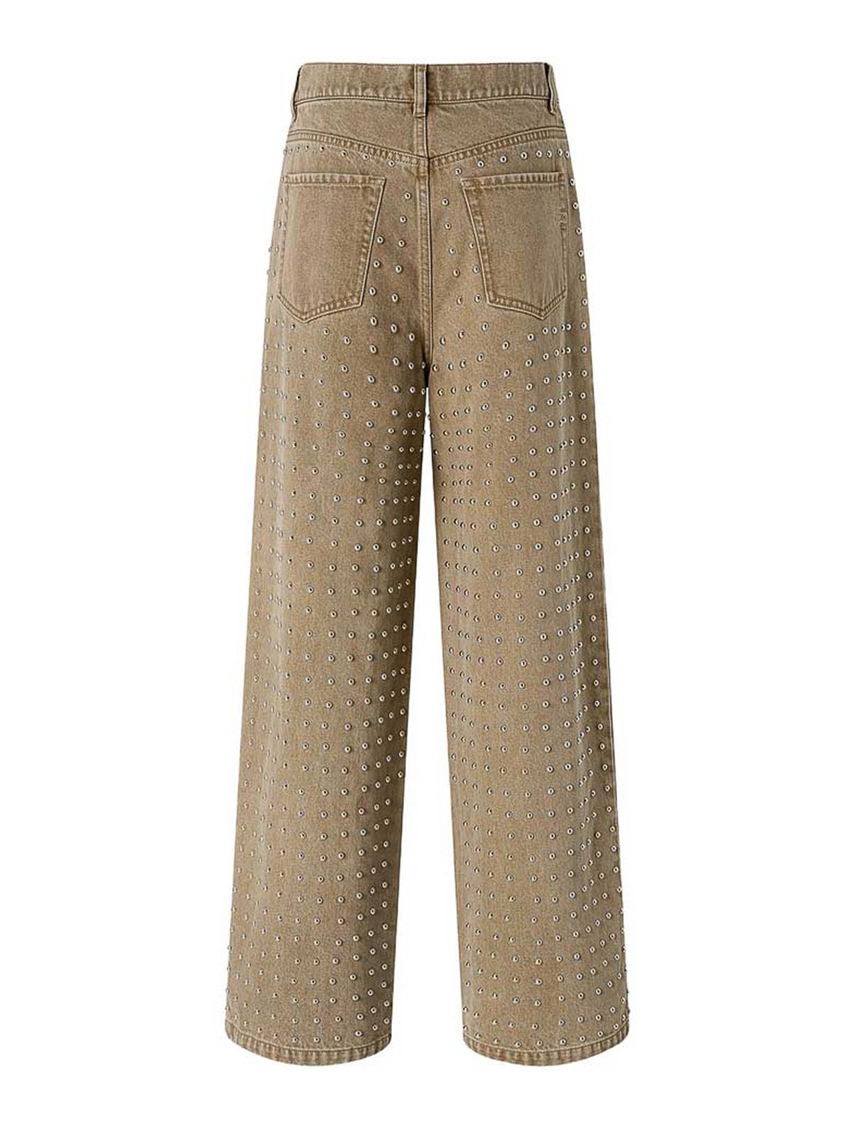 Adornos beige, trabillas para cinturón, cinco bolsillos