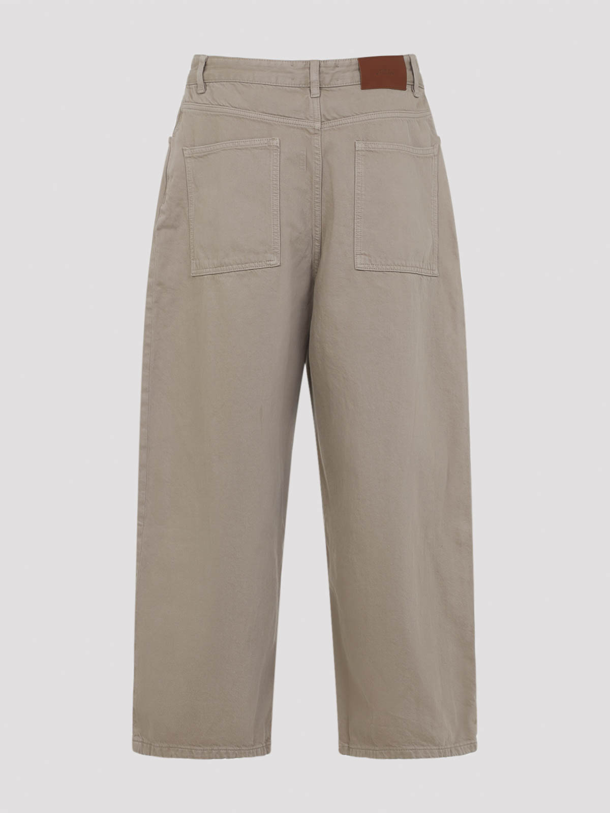 Vaqueros de algodón beige Studio nicholson paolo. Vaqueros con 5 bolsillos confeccionados en algodón beige, con cintura de talle medio, trabillas para el cinturón, cierre con botones y cremallera, una etiqueta de piel de la marca en la parte posterior y una pierna exagerada en forma de globo.
