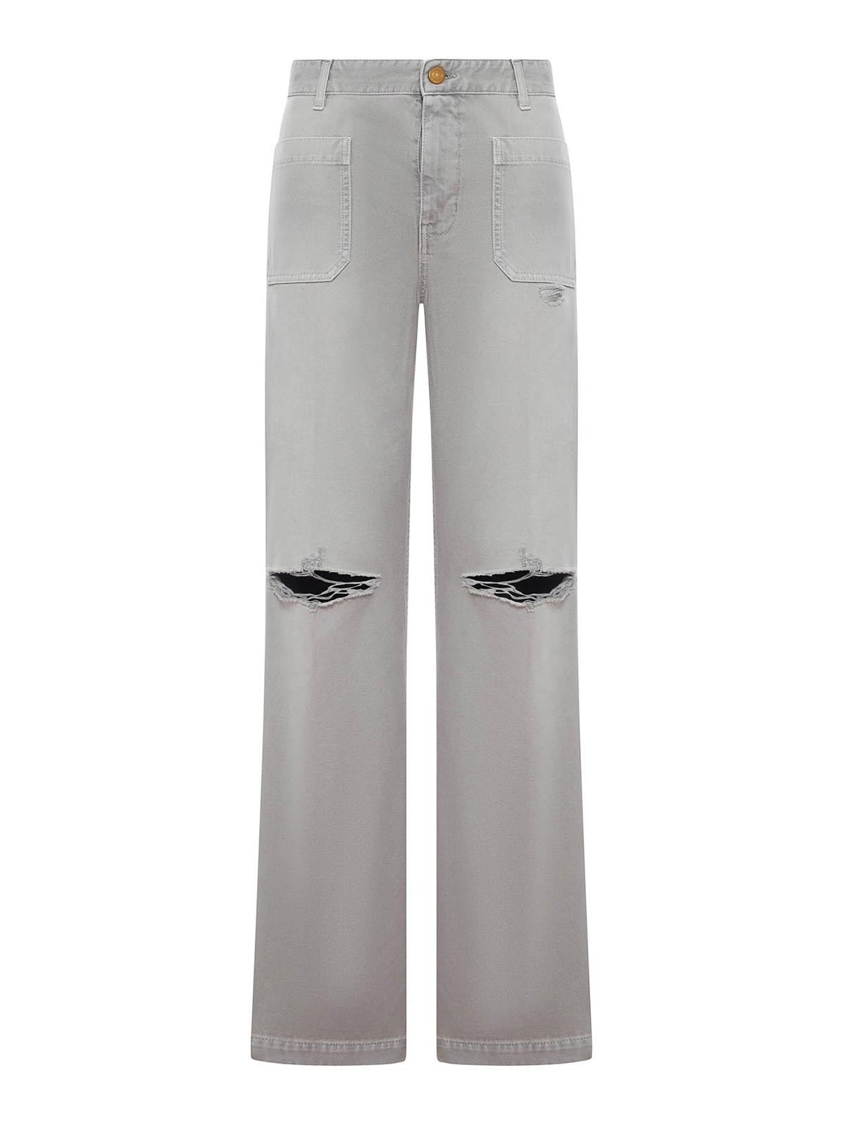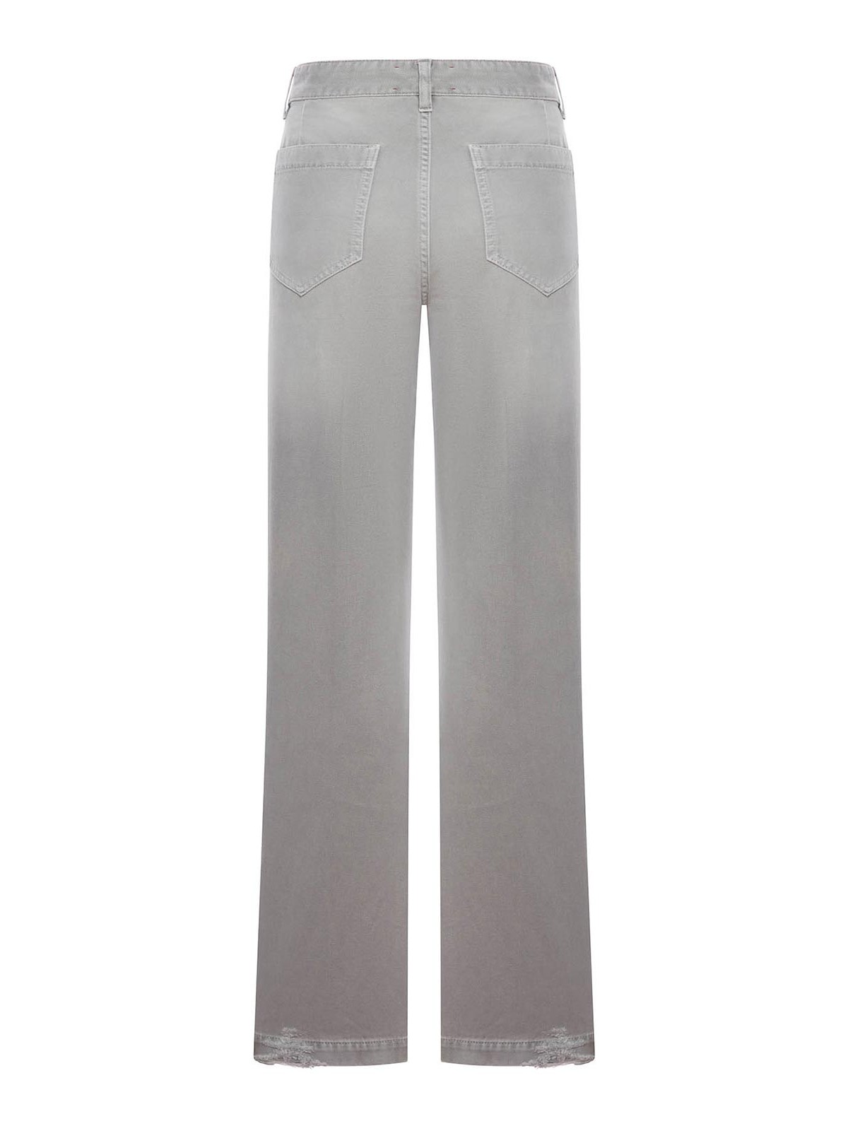 lavado en gris medio, cintura regular, trabillas, cierre con botones y cremallera, dos bolsillos de parche en la parte delantera, dos bolsillos de parche en la parte trasera, detalles desgastados en las rodillas, pierna recta, costuras tono sobre tono, 100% algodón, color: gris medio