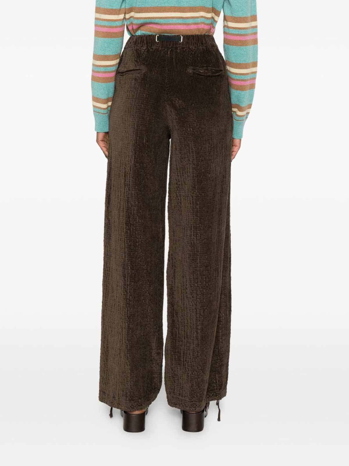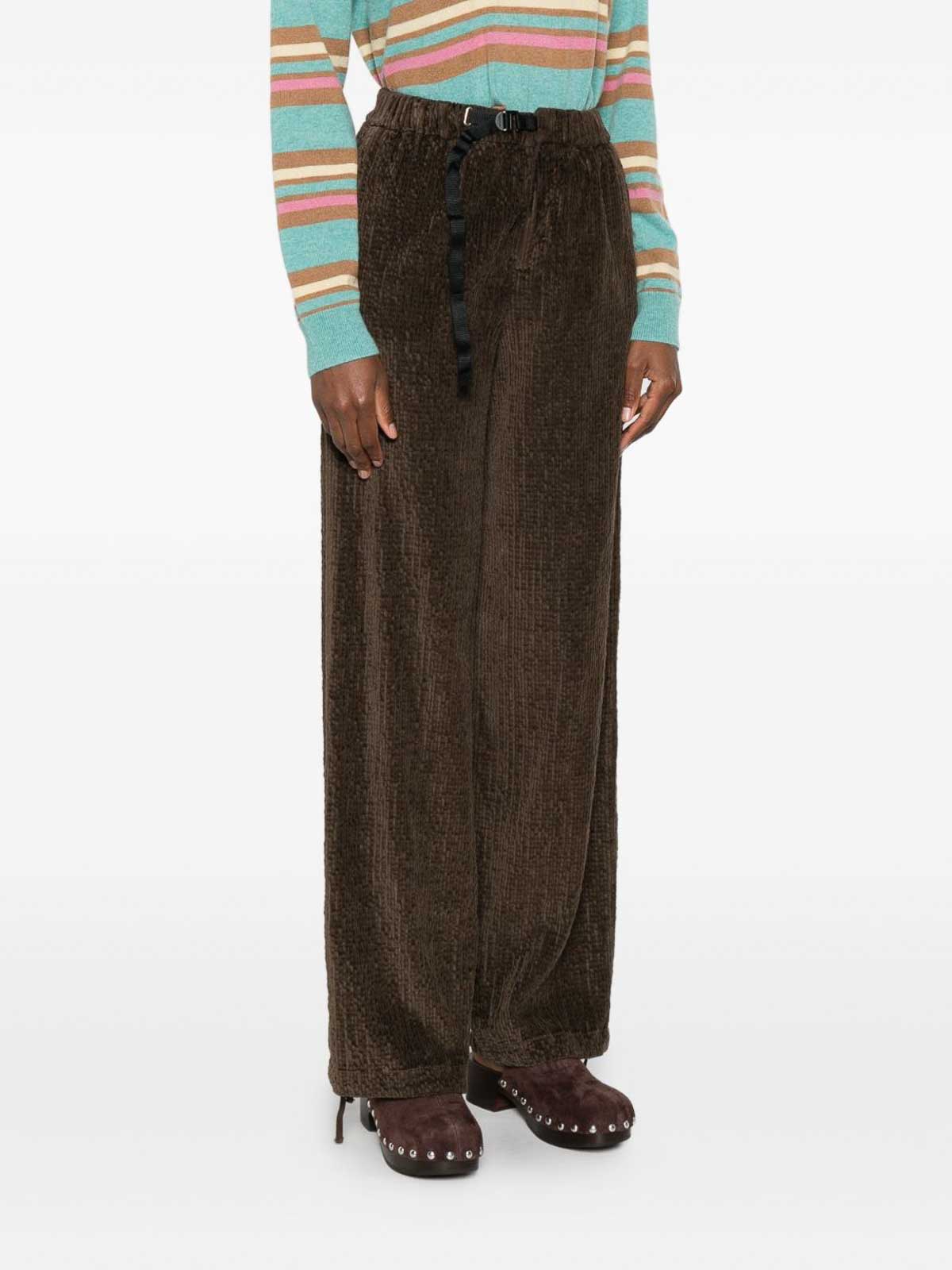 Bolsillos laterales con cordón marrón, cinturón ajustable, pernera recta