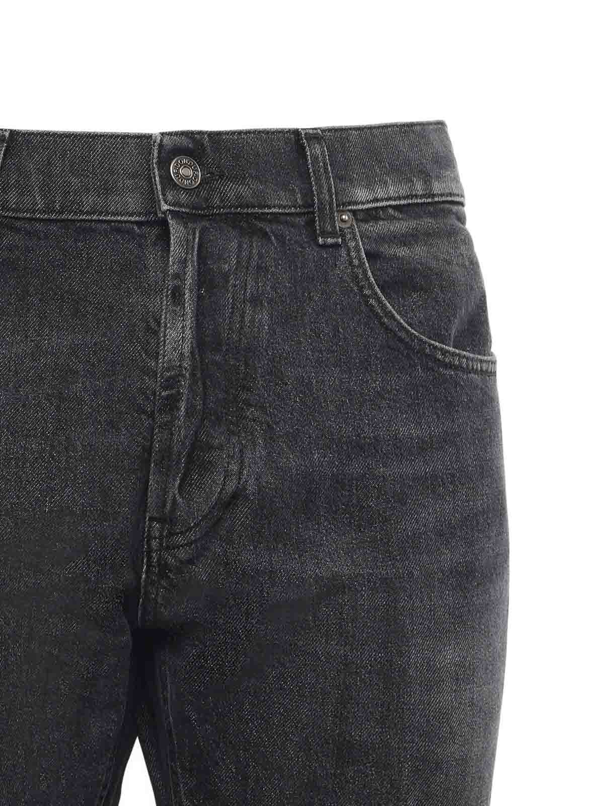 confeccionado en mezclilla elástica de algodón y lyocell, 5 bolsillos, cintura con trabillas, fabricado en Italia, la talla que se muestra en la foto es 31, color del diseñador: negro