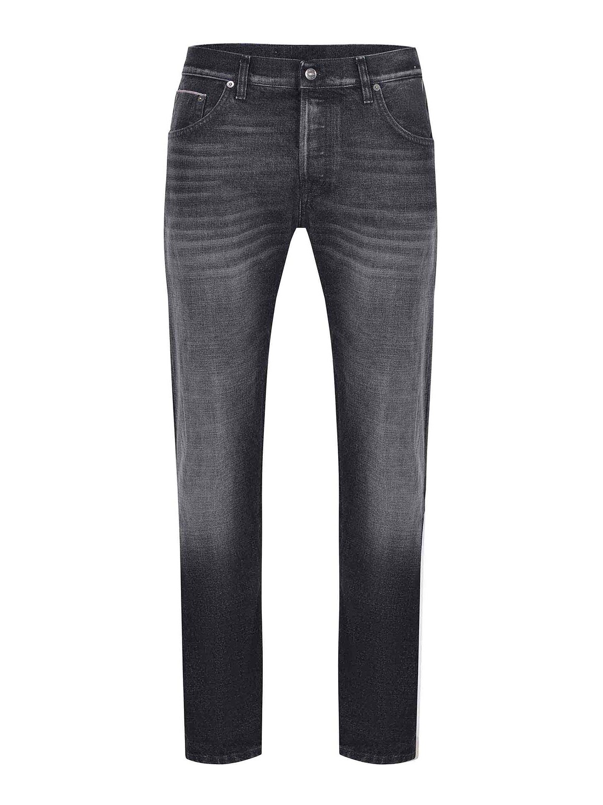 Vaqueros Dondup confeccionados en mezclilla negra, lavado a la piedra, cierre con botones, trabillas en la cintura, cinco bolsillos, corte ajustado, 65% poliéster, 35% algodón, fabricados en Italia