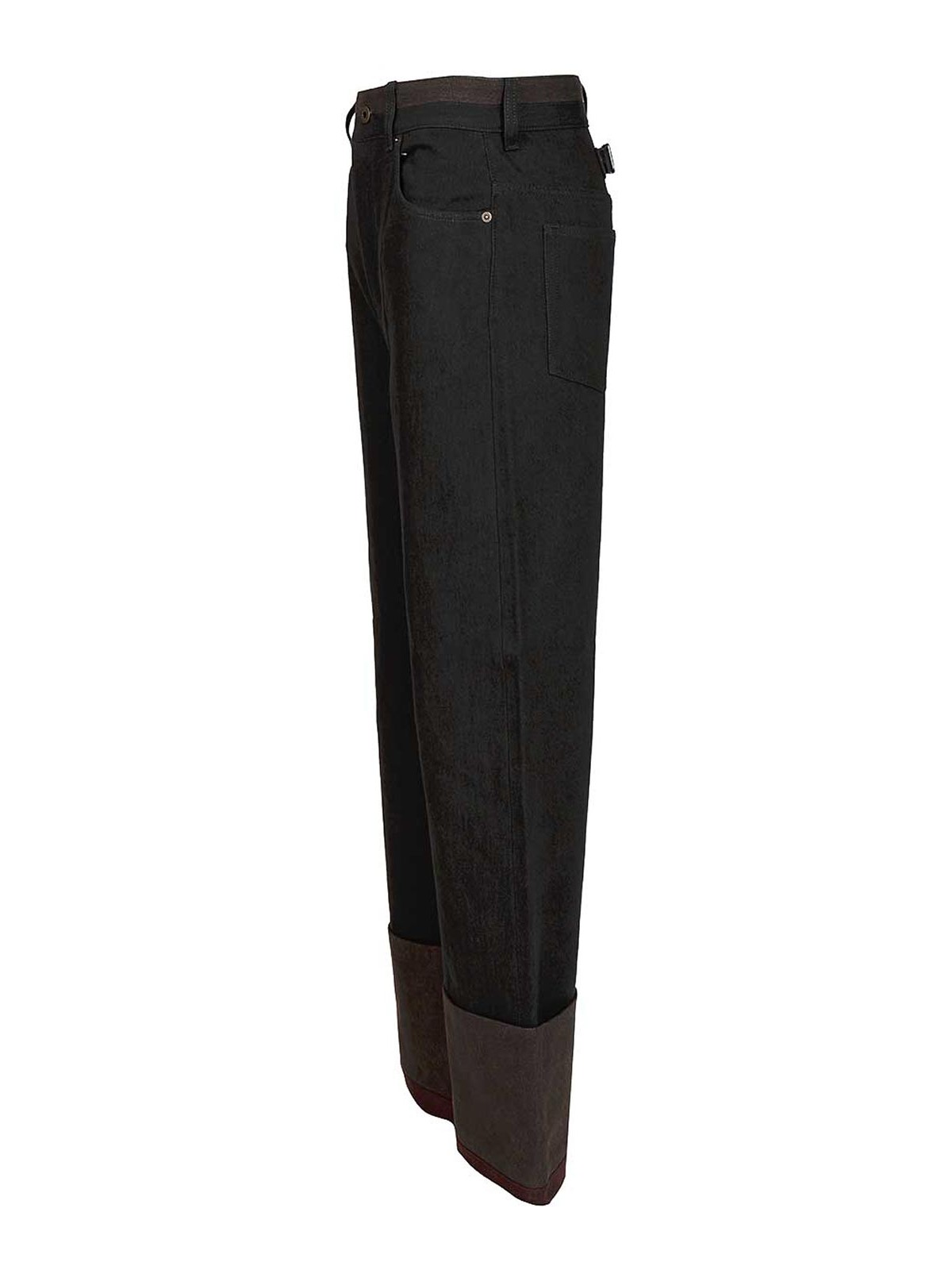 Vaqueros vaqueros con puños de Loewe, con cintura y puños en bloques de color, talle medio, pernera recta, cinco bolsillos, cierre con botones ocultos, cordón en la parte trasera y un parche de piel con letras Loewe en relieve en la parte posterior.