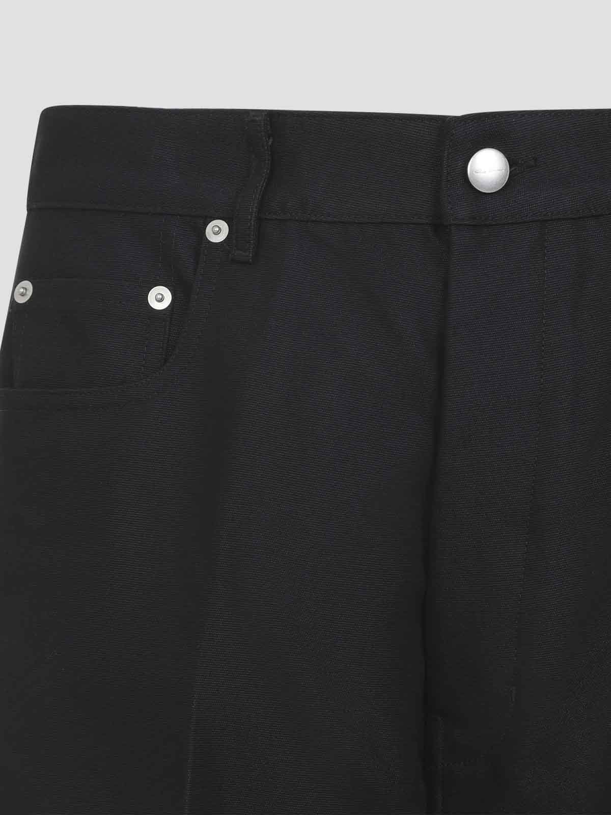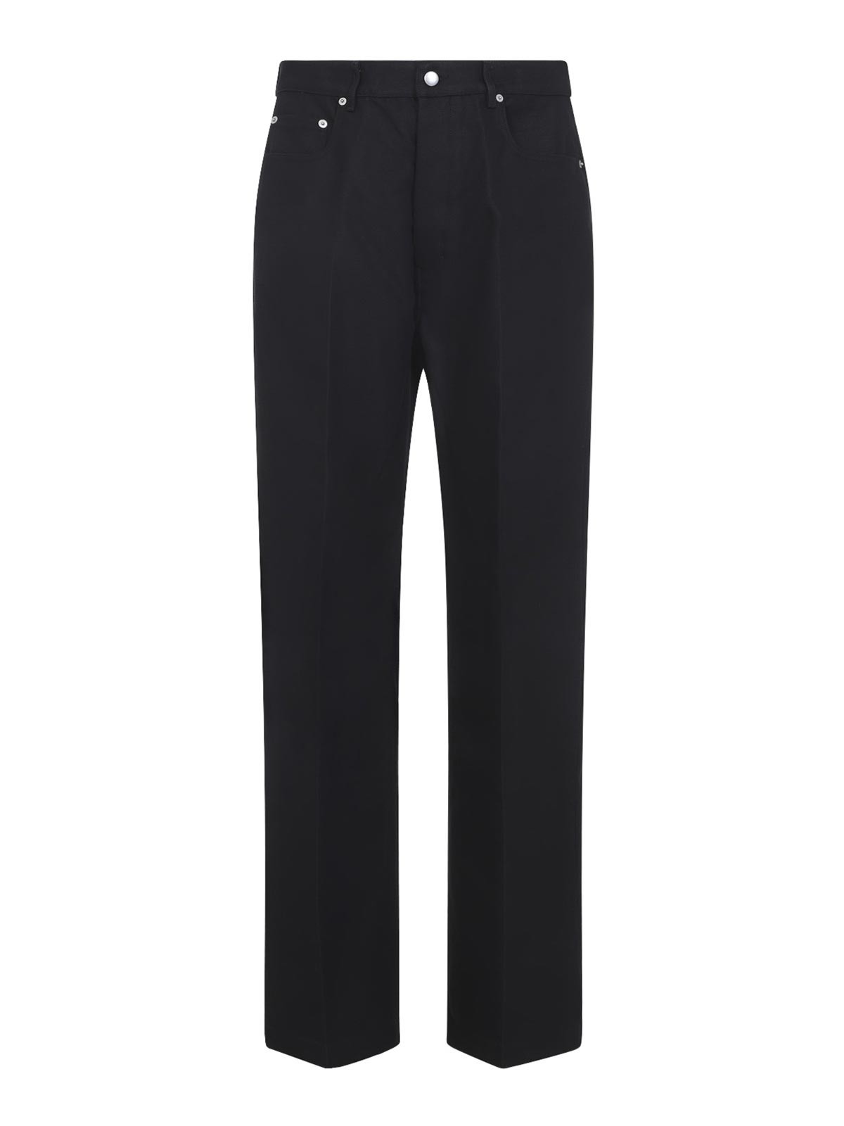 Vaqueros de algodón negros geth de Rick Owens. 5 bolsillos confeccionados en mezcla de algodón negro, con cintura baja, trabillas para el cinturón, bragueta con botones en la parte delantera, pliegue holgado central y pernera ancha.