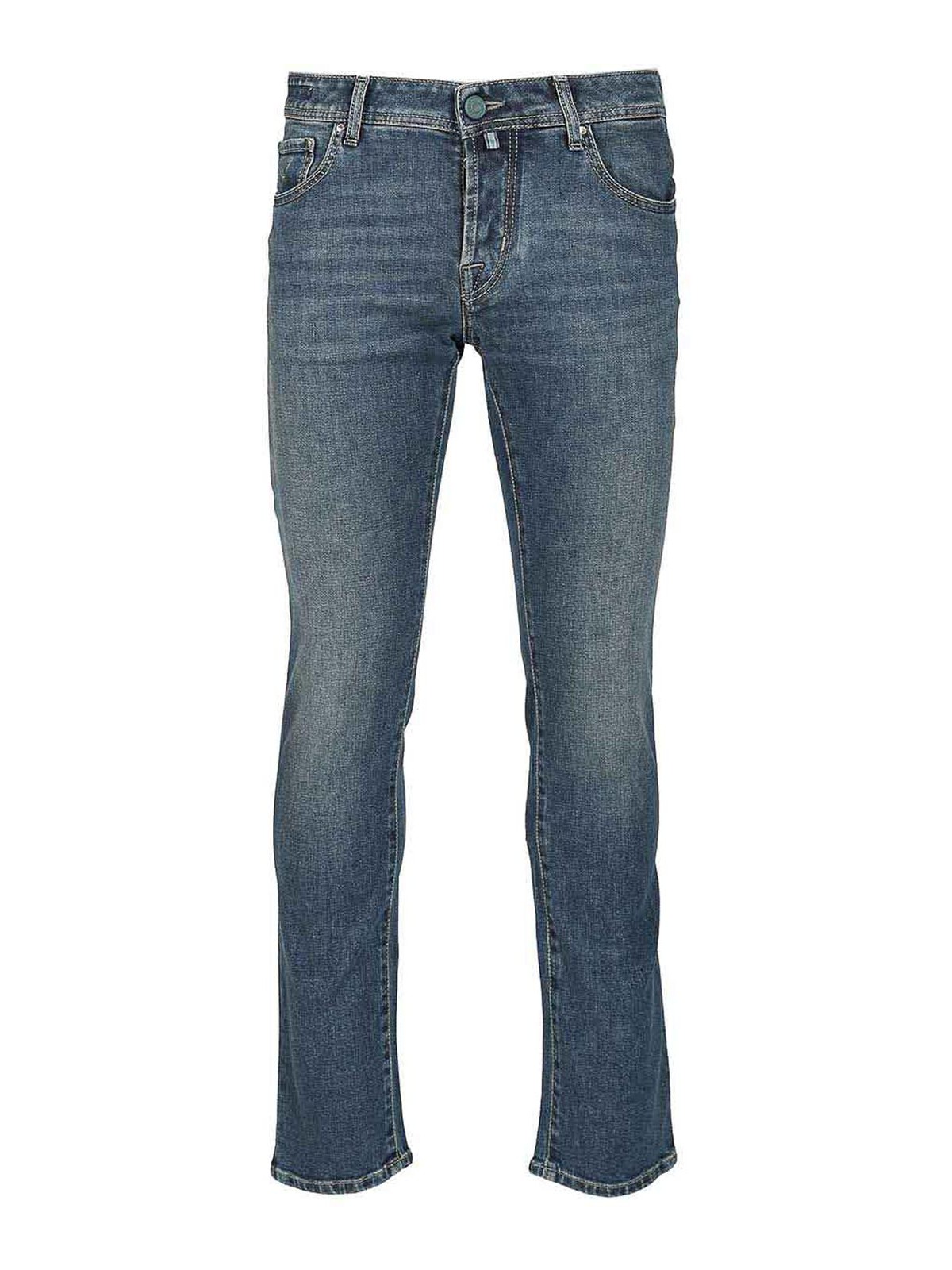 Vaqueros Slim Nick en mezclilla superelástica de jacob cohen, con 5 bolsillos, etiqueta de terciopelo y logotipo bordado, bandana estampada y perfumados con la exclusiva fragancia de jacob cohn.