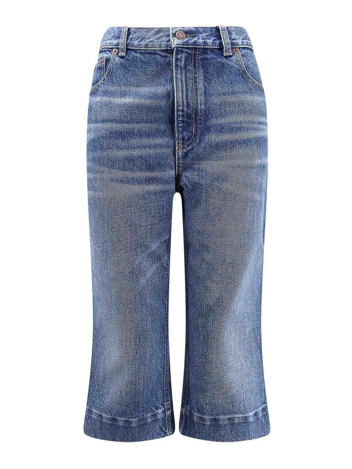 Cintura alta, cierre con cremallera y botón, cinco bolsillos, parche con el logotipo en la parte trasera, fabricado en Italia, 100% algodón.