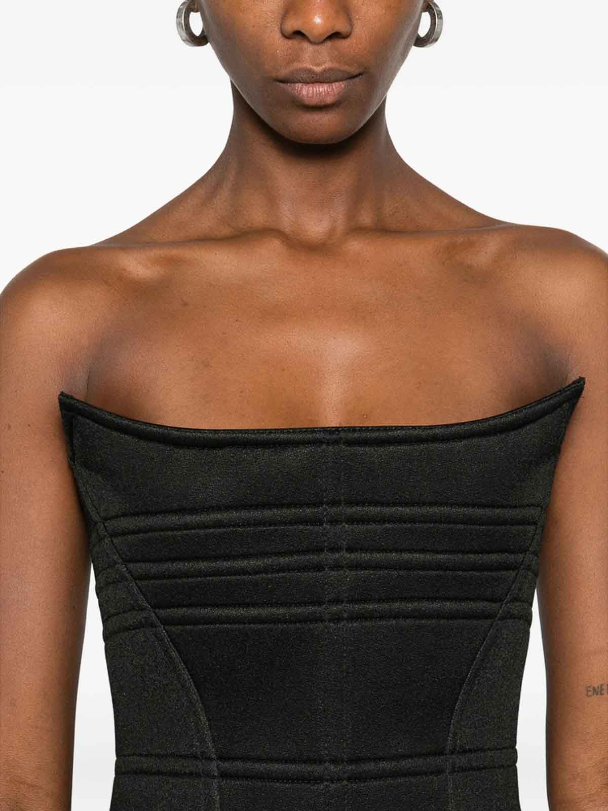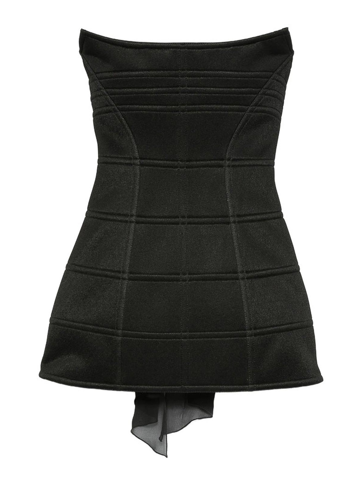 Corpiño negro sin tirantes con paneles, cintura ajustada, dobladillo recto