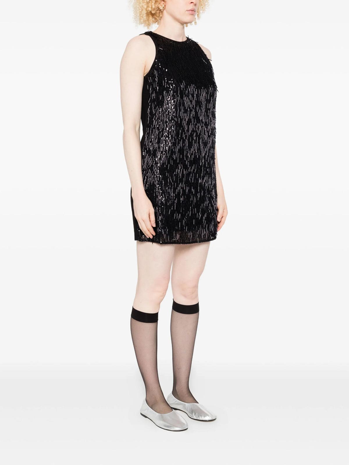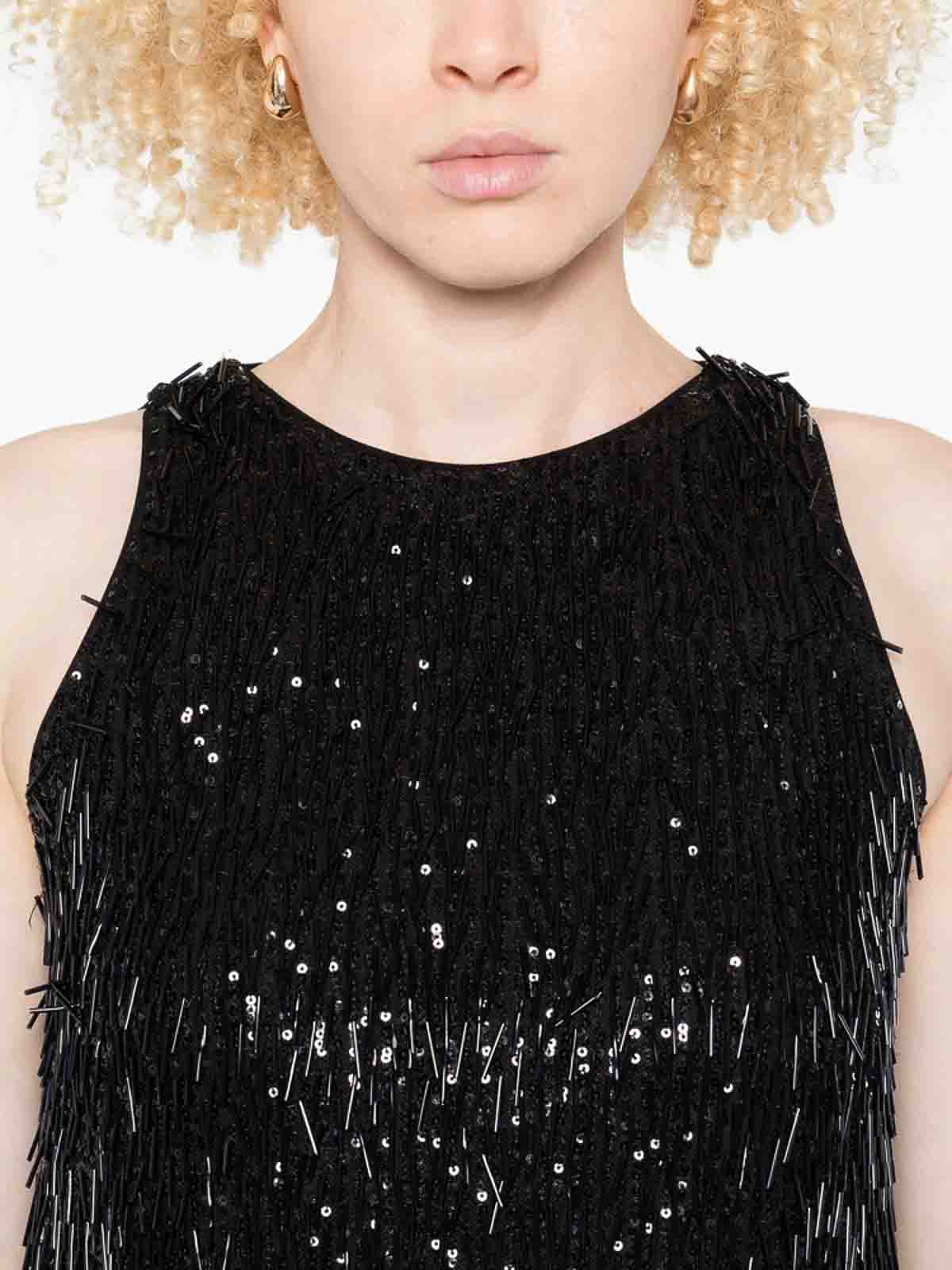 Adorno de lentejuelas negras, flecos, sin mangas, cuello redondo, dobladillo recto
