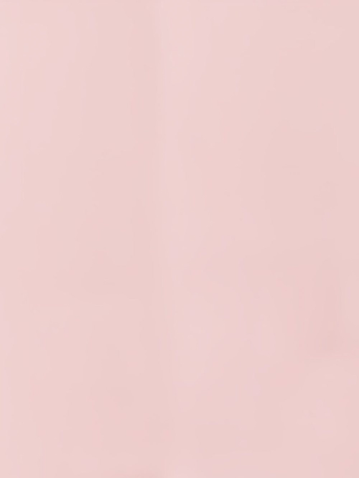 Escote drapeado rosa claro, corpiño fruncido, mangas largas, cierre con cremallera oculta