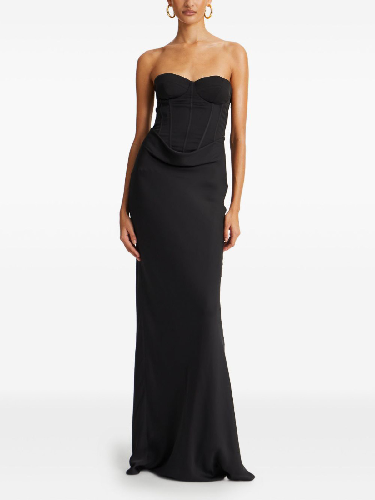 Corsé negro sin correa que se adhiere con costuras, falda drapeada, longitud máxima