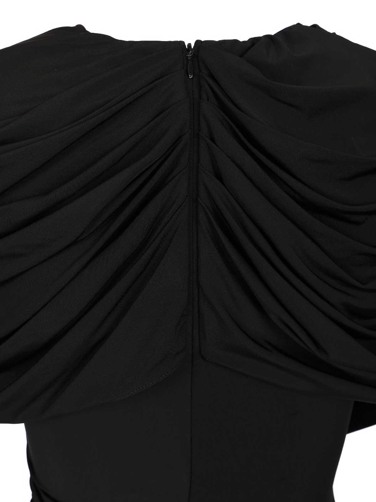 Vestido midi doble de satén en mezcla de viscosa de stella mccartney, con drapeados cruzados en forma de capa en la parte superior. mangas. Corte en el pecho. Cierre con cremallera.