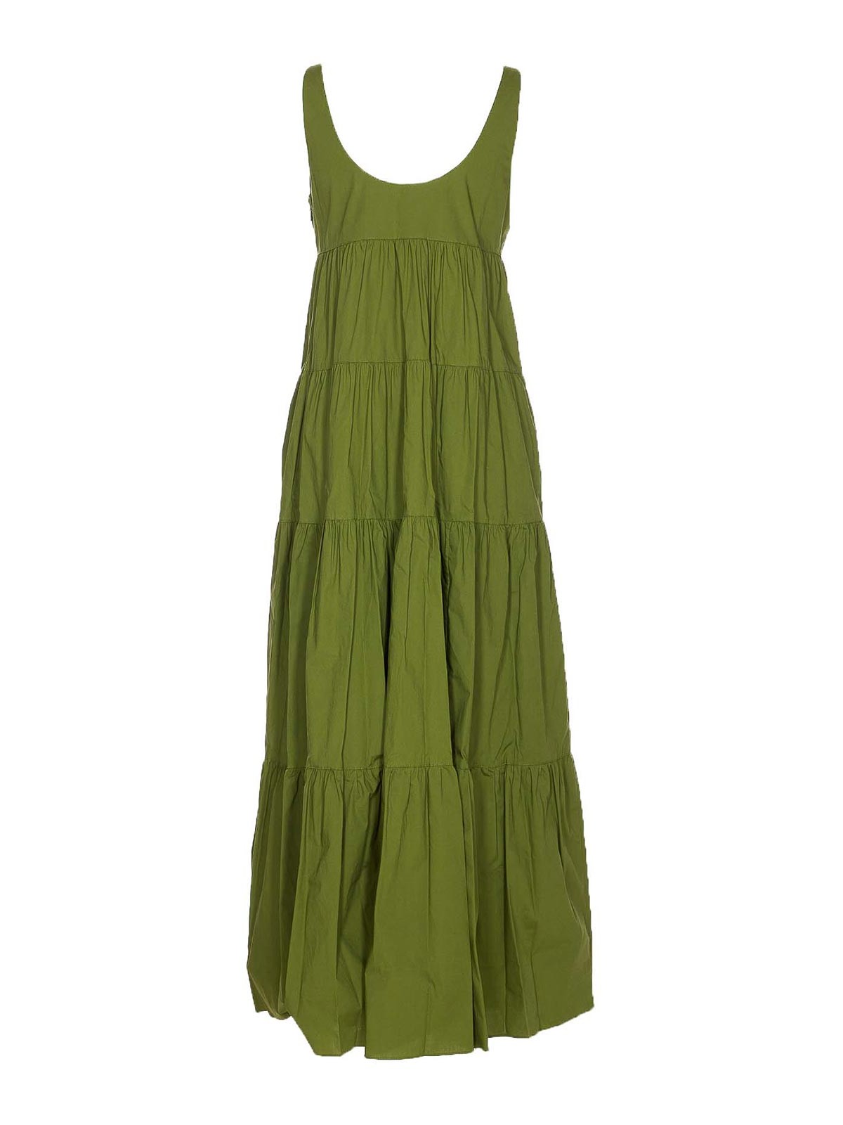 Vestido verde sin mangas con cuello redondo, modelo largo, corte ancho