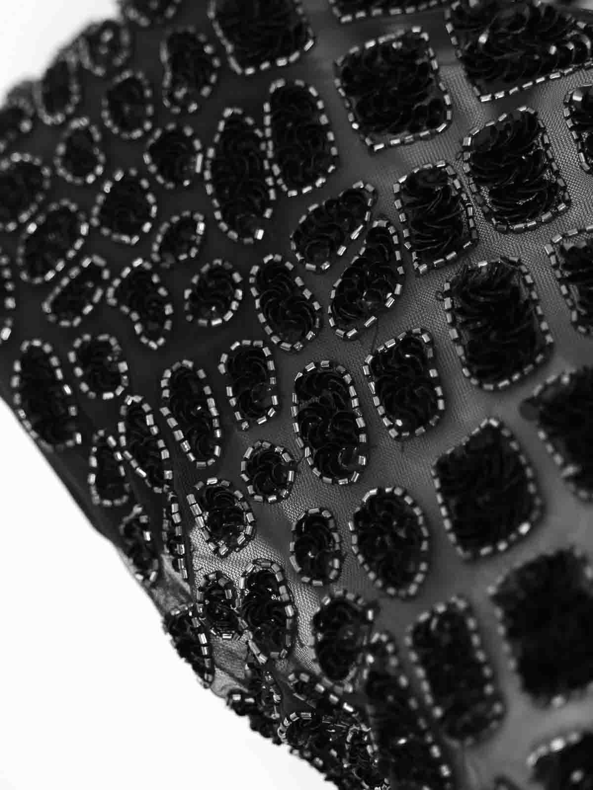 Camiseta ligera de tul crepé con diseño semitransparente, sin mangas, cuello redondo, hombros acolchados, corte lateral brillante, cremallera trasera, corte ajustado