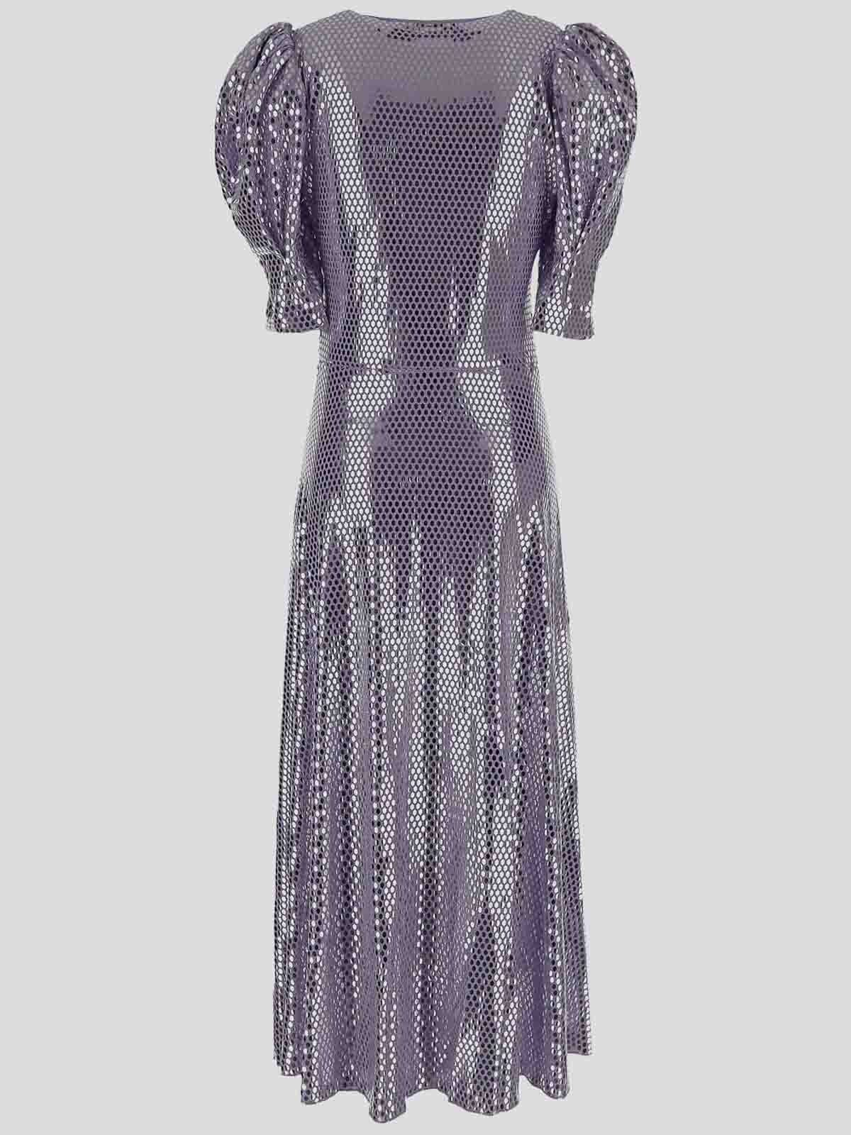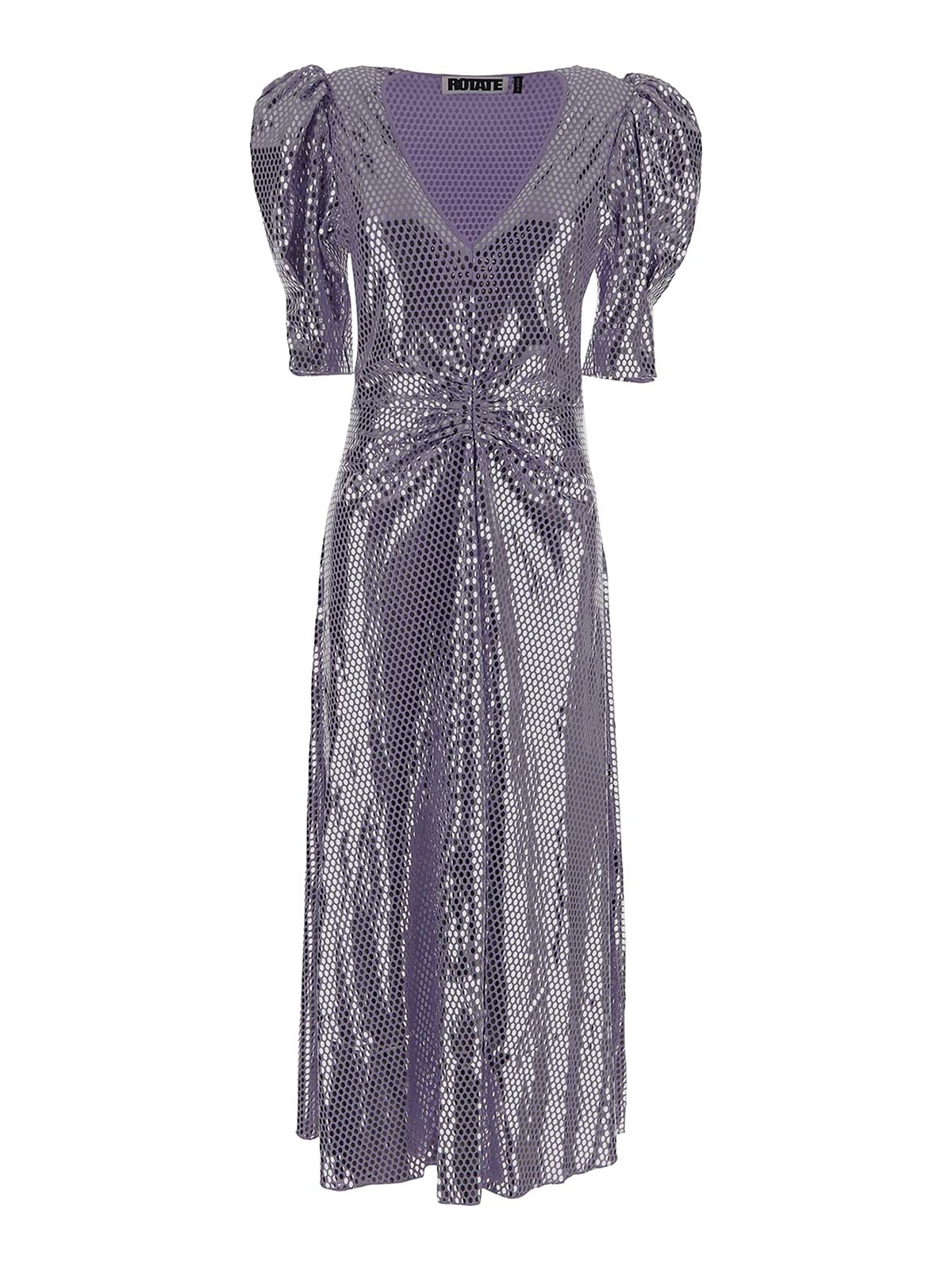 Vestido tipo sierina Rotate lavander de poliéster reciclado con estampado metalizado