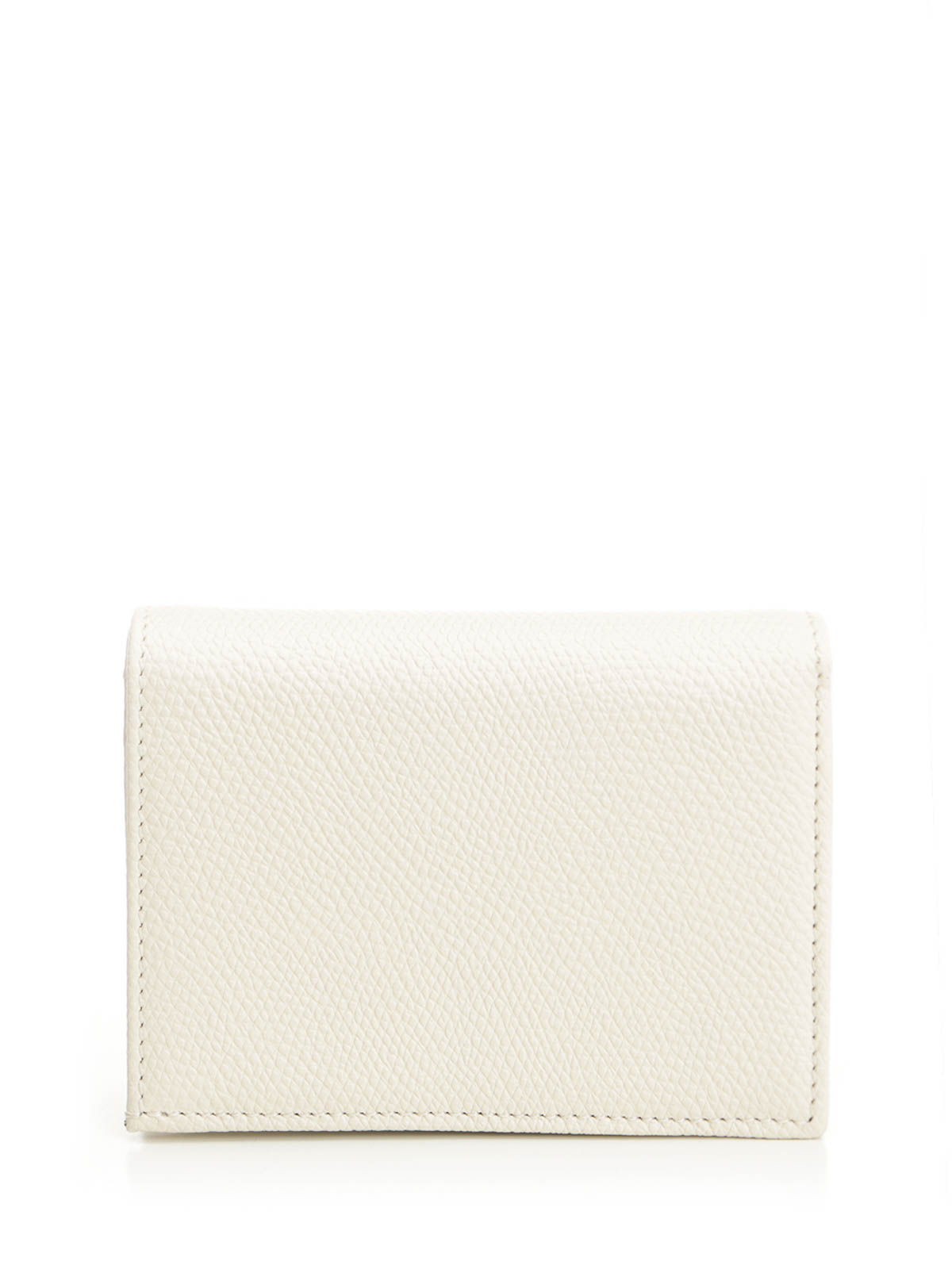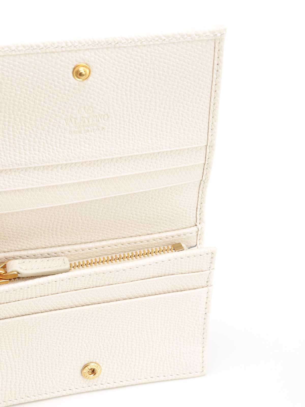 Cartera granulada con el logo del famoso vlogo de Valentino Garavani con un logotipo y detalles en acabado envejecido, un botón a presión, cinco ranuras para tarjetas y un bolsillo plano, un bolsillo para monedas con cremallera y un compartimento para billetes.