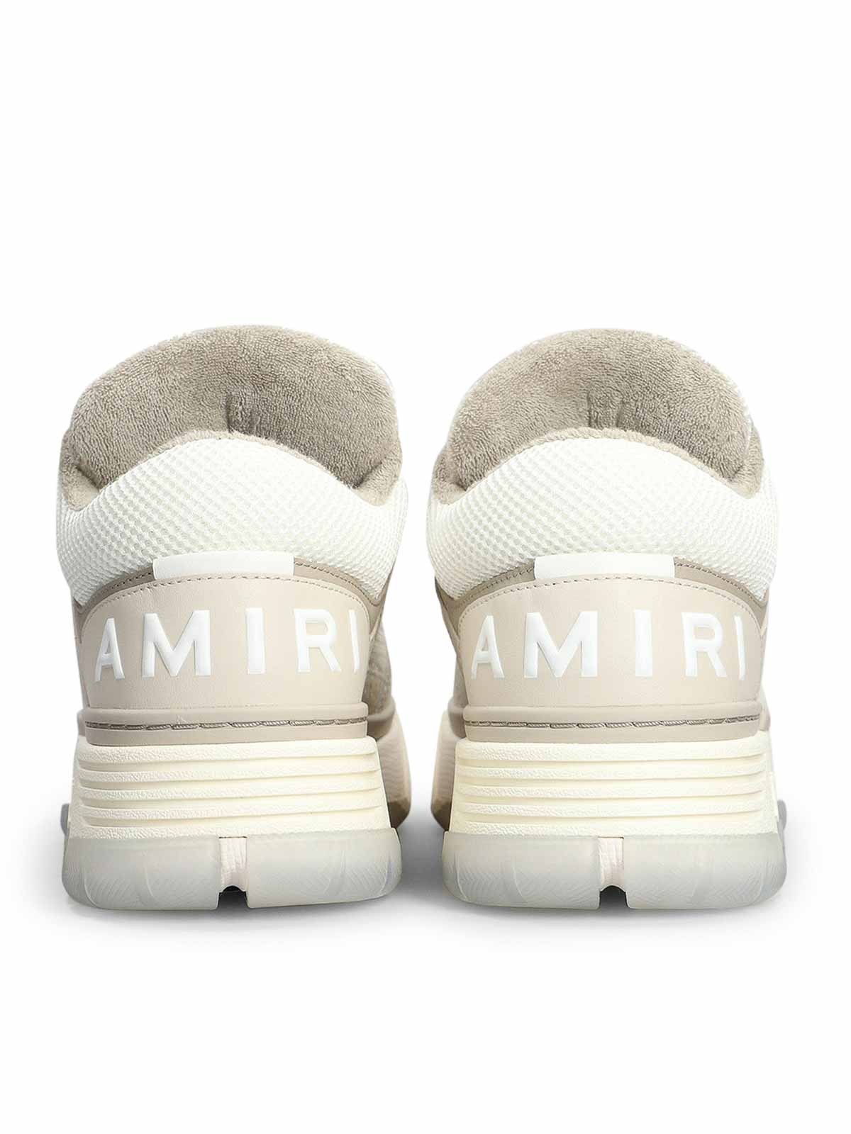 Paneles sobredimensionados, esponjosos y perforados, doble encaje con ojales con el logotipo, logotipo lateral, lengüeta acolchada firmada con las palabras de Mike Amiri, alabastro en color