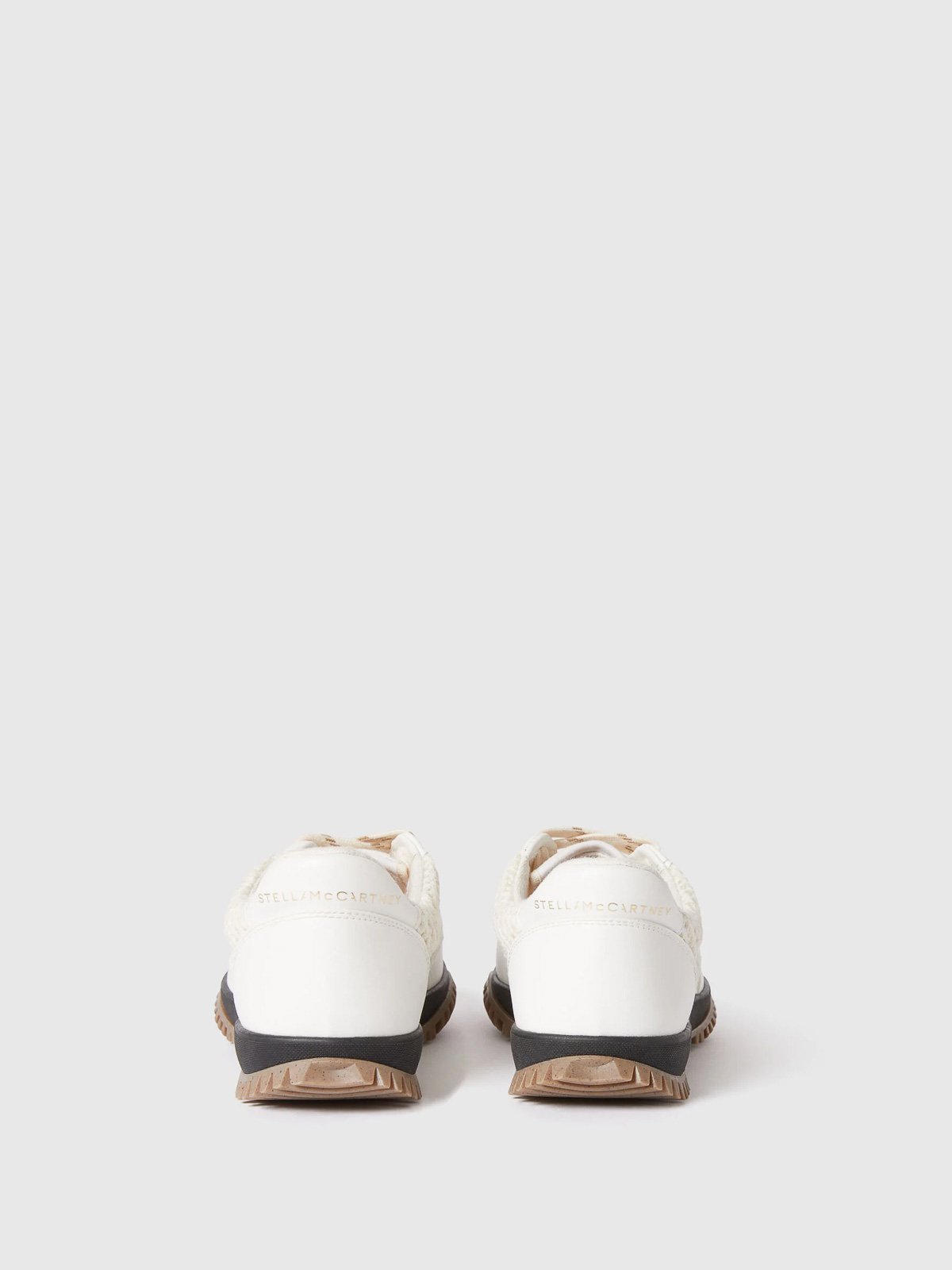 Stella mccartney retoma las zapatillas deportivas en forma de S, ondulado y cada componente incorpora innovaciones, como la parte superior con trozos de hojas de piayarn inspirados en las zapatillas de correr vintage. La silueta estilizada está confeccionada con paneles de malla transpirable hechos de fibras y se asienta sobre una exterior ligera hecha de una alternativa natural, compostable y reciclable al color blanco, paneles de malla de piayarn hechos de fibras de hojas de piña a partir de residuos agrícolas, puntera redondeada, sin residuos, de origen biológico Banda de rodadura Ocir en relieve con estampado totalmente forrado, hecha en Italia
