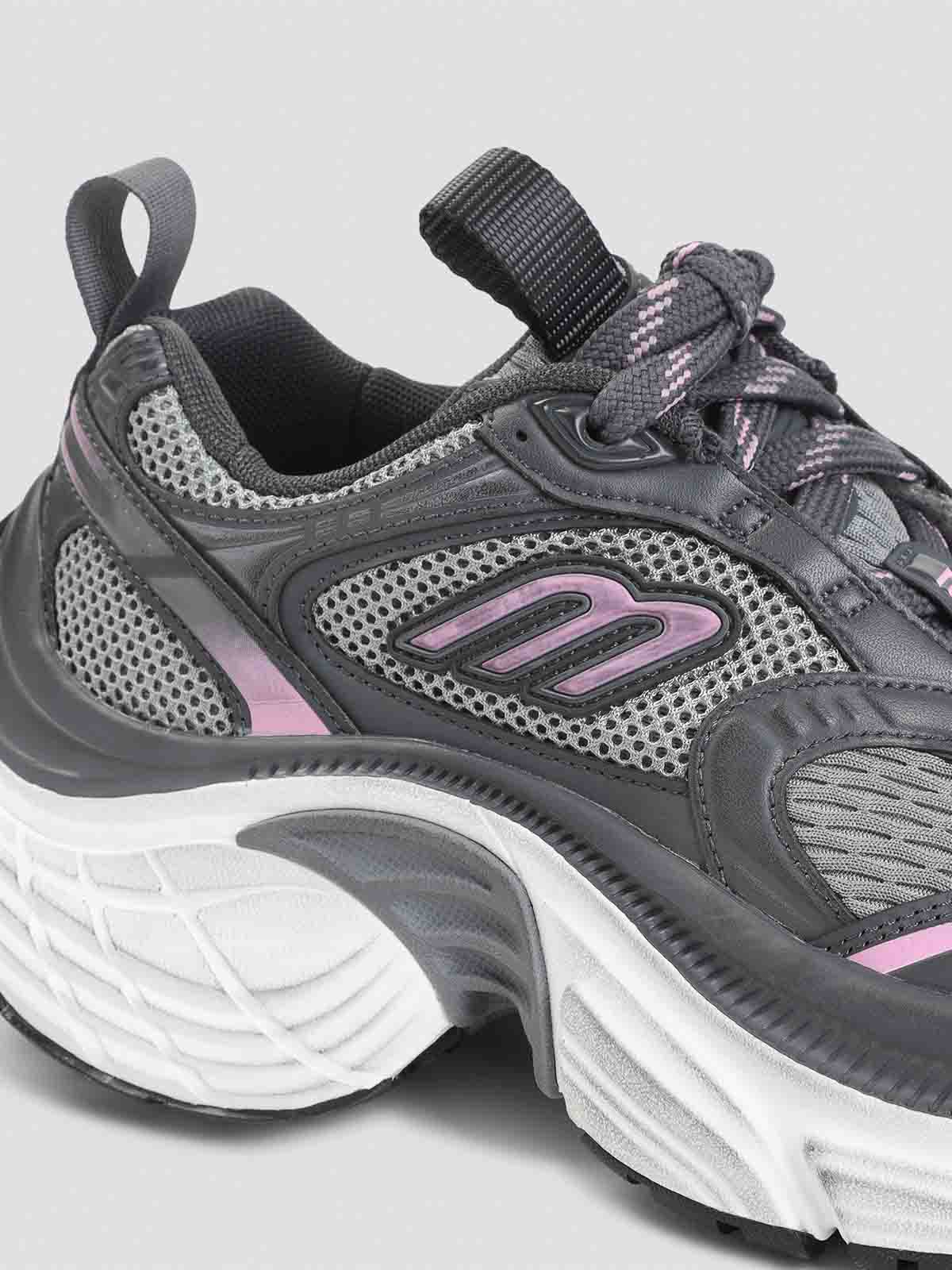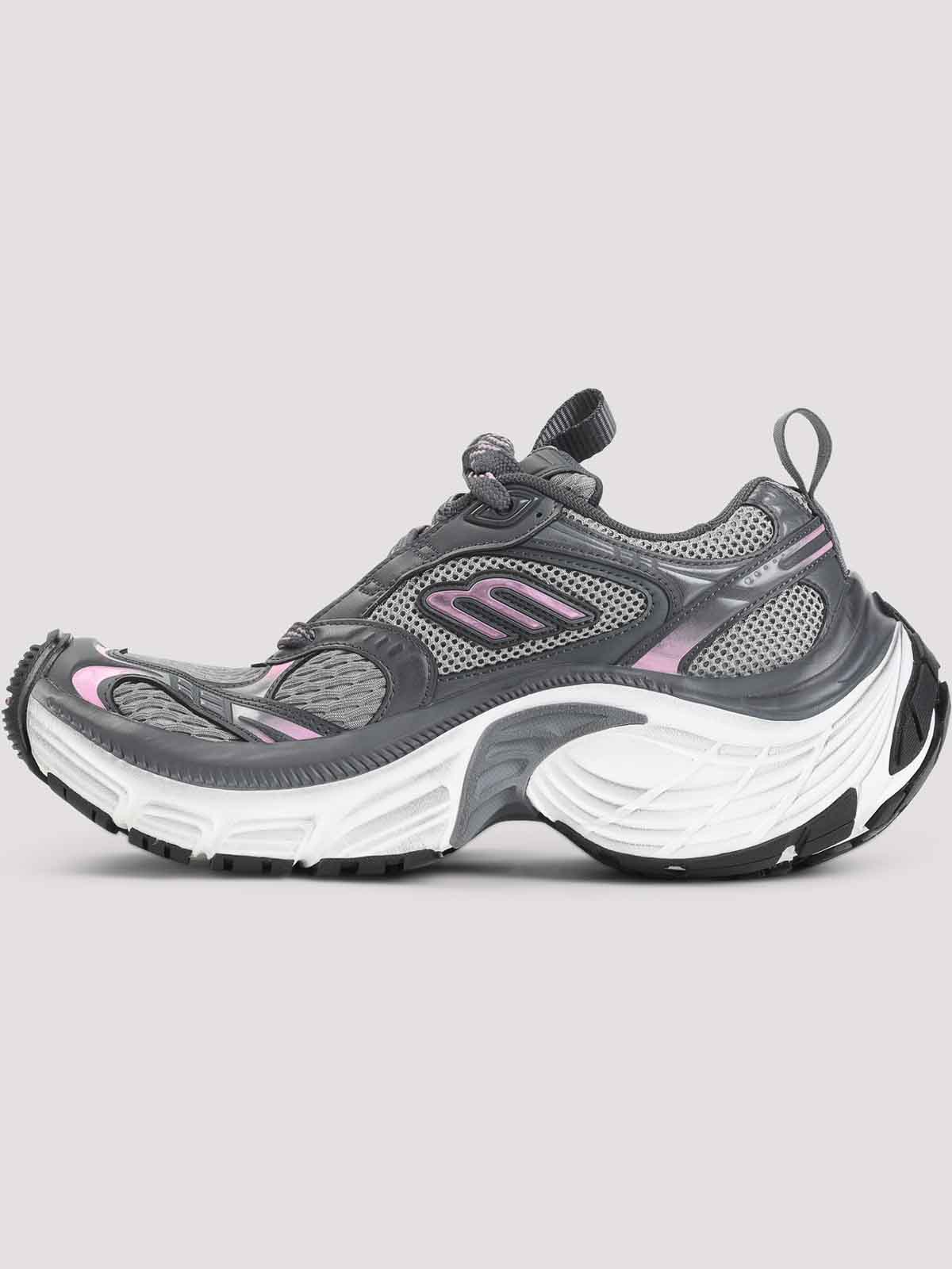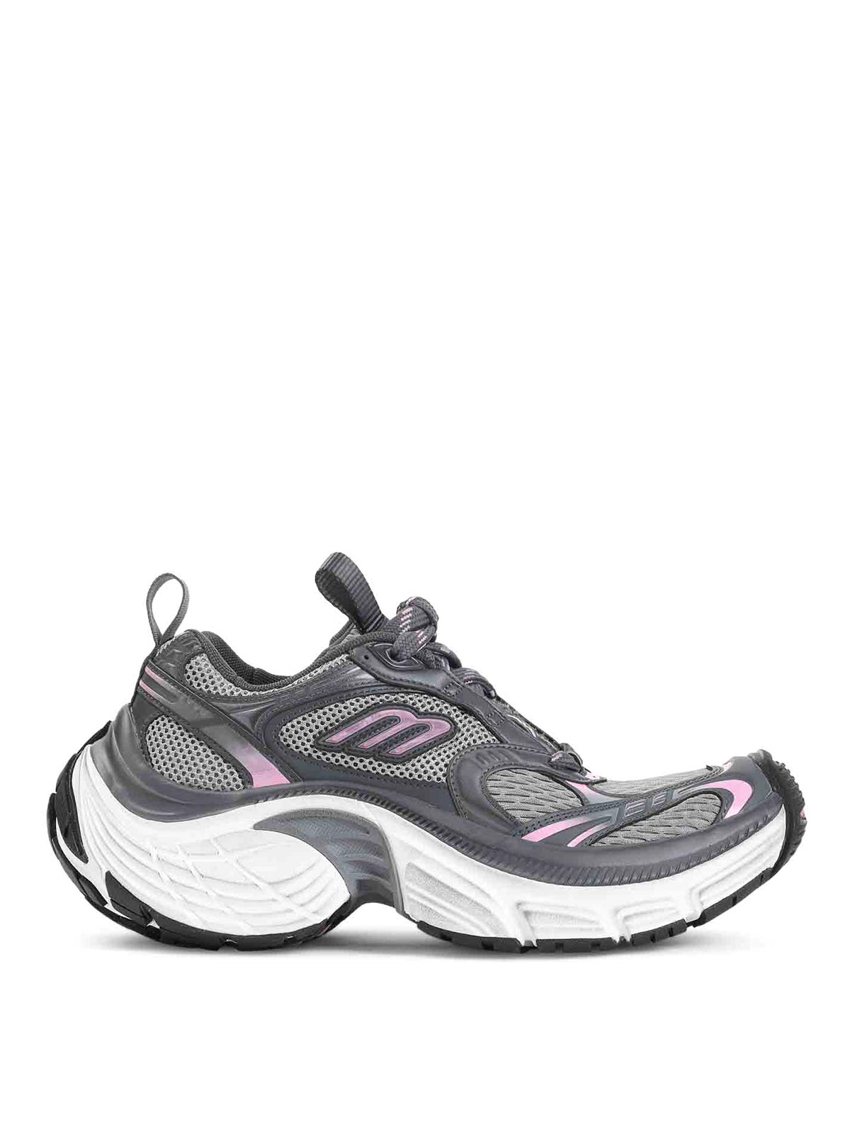 Zapatillas Balenciaga xl en gris, rosa, blanco y negro confeccionadas en gris, rosa, blanco y negro, tecnología y malla desgastadas, puntera almendrada, cordones, logotipo en la lengüeta, logotipo en la lengüeta, icono deportivo en los laterales, talla bordada en la parte posterior, tirador rosa, lengüeta en la lengüeta y en la espalda
