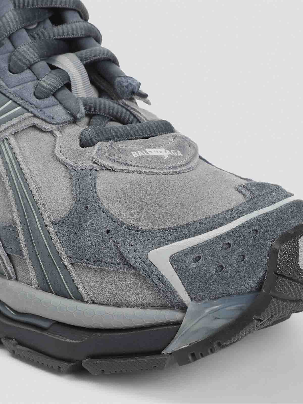 Zapatillas deportivas grises Balenciaga, de color gris puro, puntera redonda y reforzada con números blancos en contraste en la parte superior, letras blancas en contraste, logotipo en la parte superior, cordones, arriba, gris oscuro, letras bordadas, logotipo en la lengüeta, diseño en negro y gris