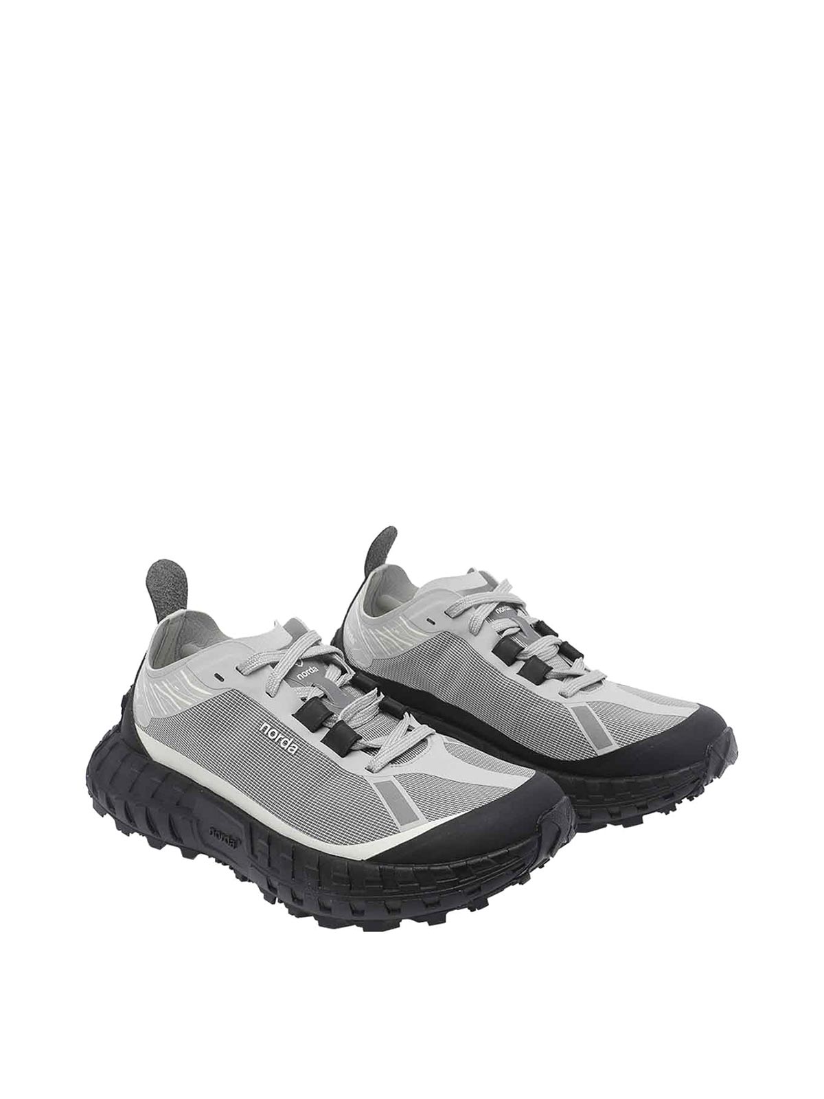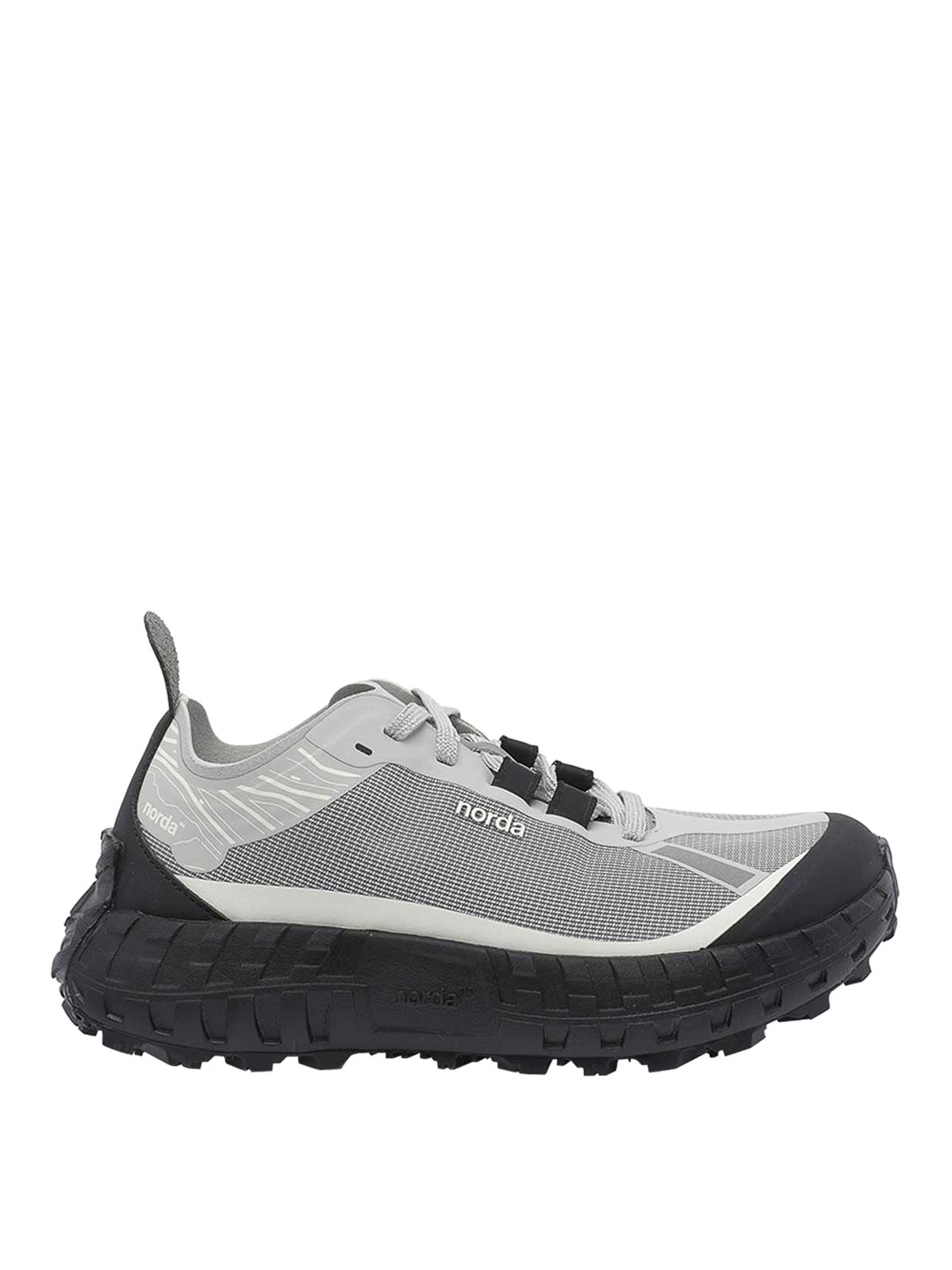 Zapatillas Norda 001a grises, punta redonda, minilogo lateral