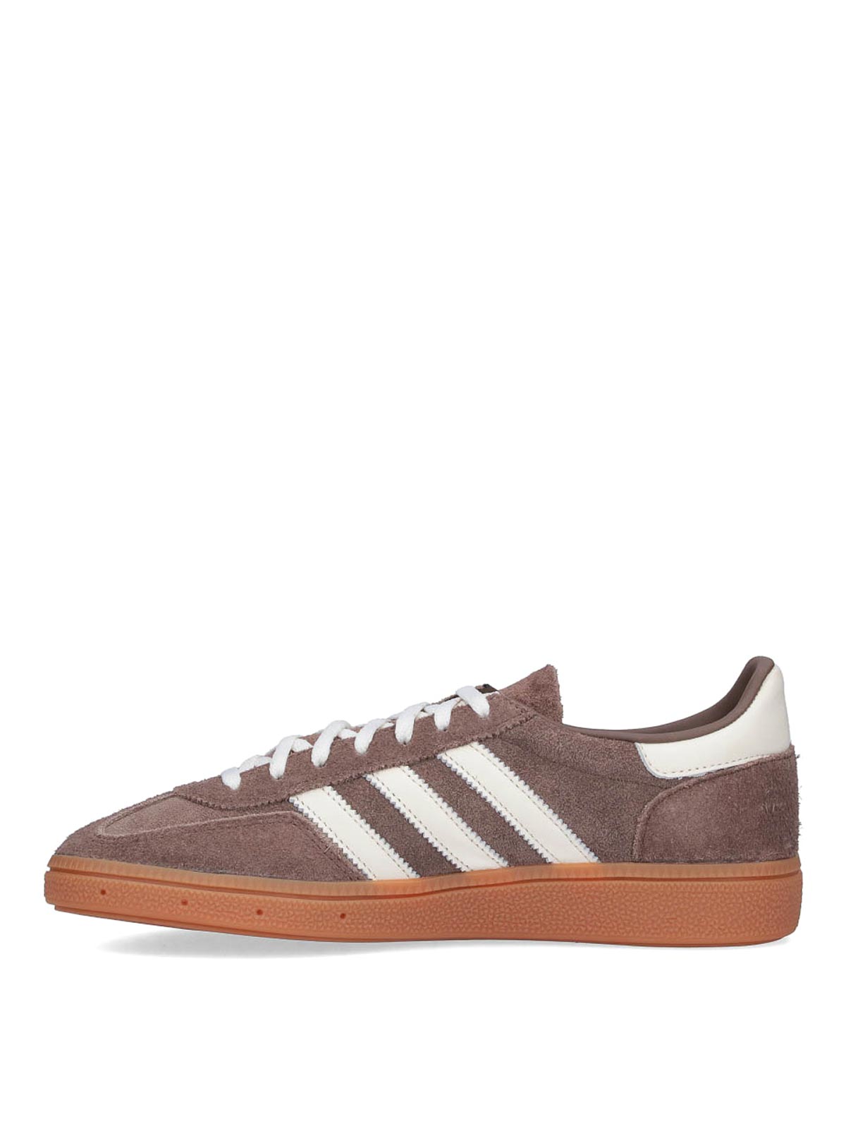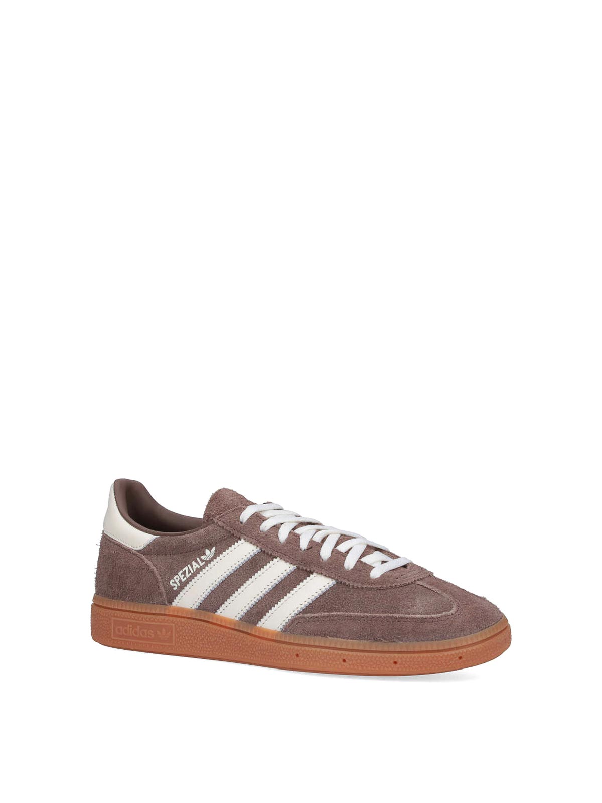 Zapatillas Handball Spezial Adidas, en gamuza marrón, detalles en crema, punta redonda, cierre con cordones, etiqueta con el logotipo rosa, icónicas franjas laterales, estampado Spezial lateral, suela de goma tono sobre tono, detalle de logotipo en relieve lateral.